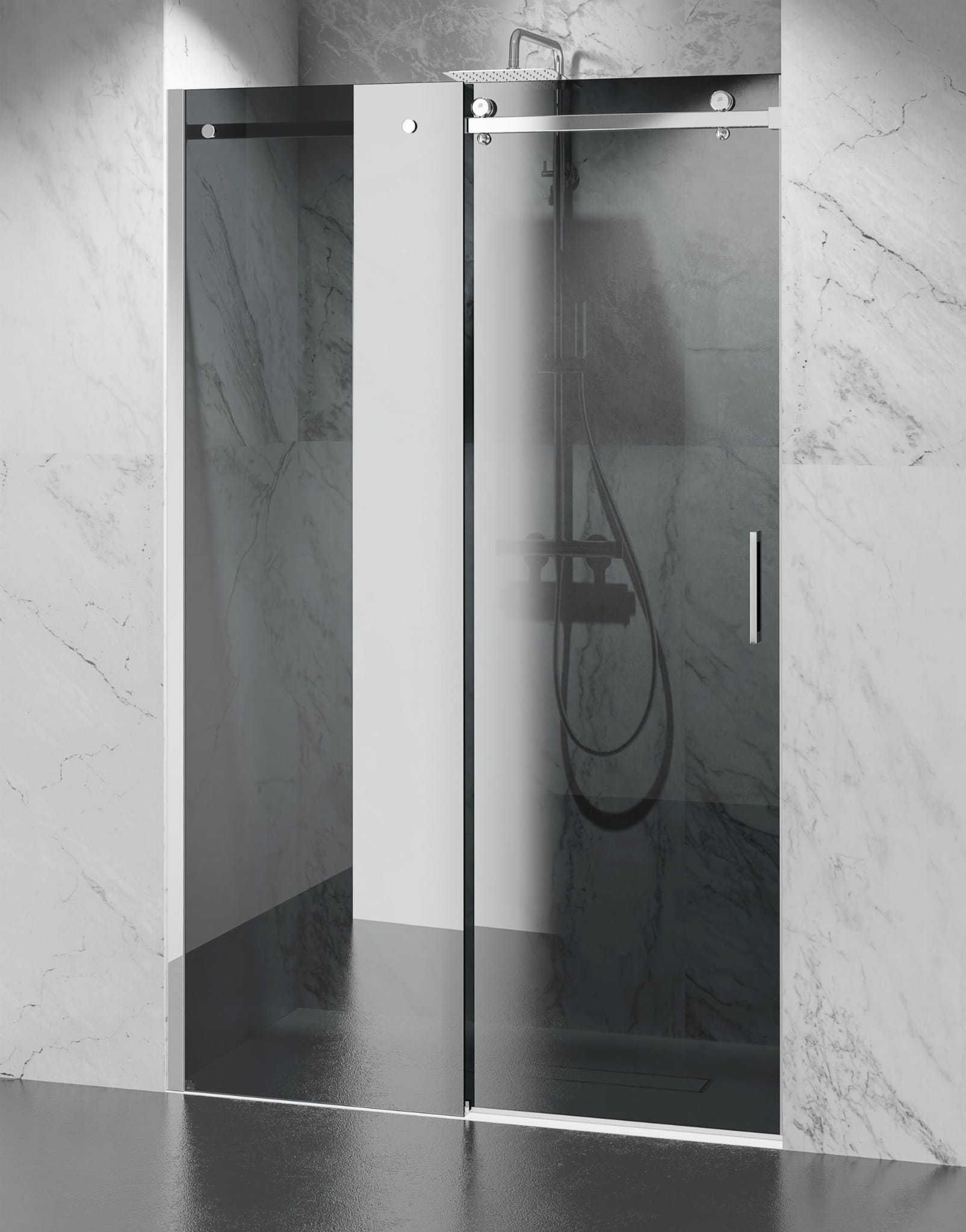 Okucia Chrom Połysk, Szkło Grafitowe Dymione, Drzwi Prysznicowe Przesuwne.
