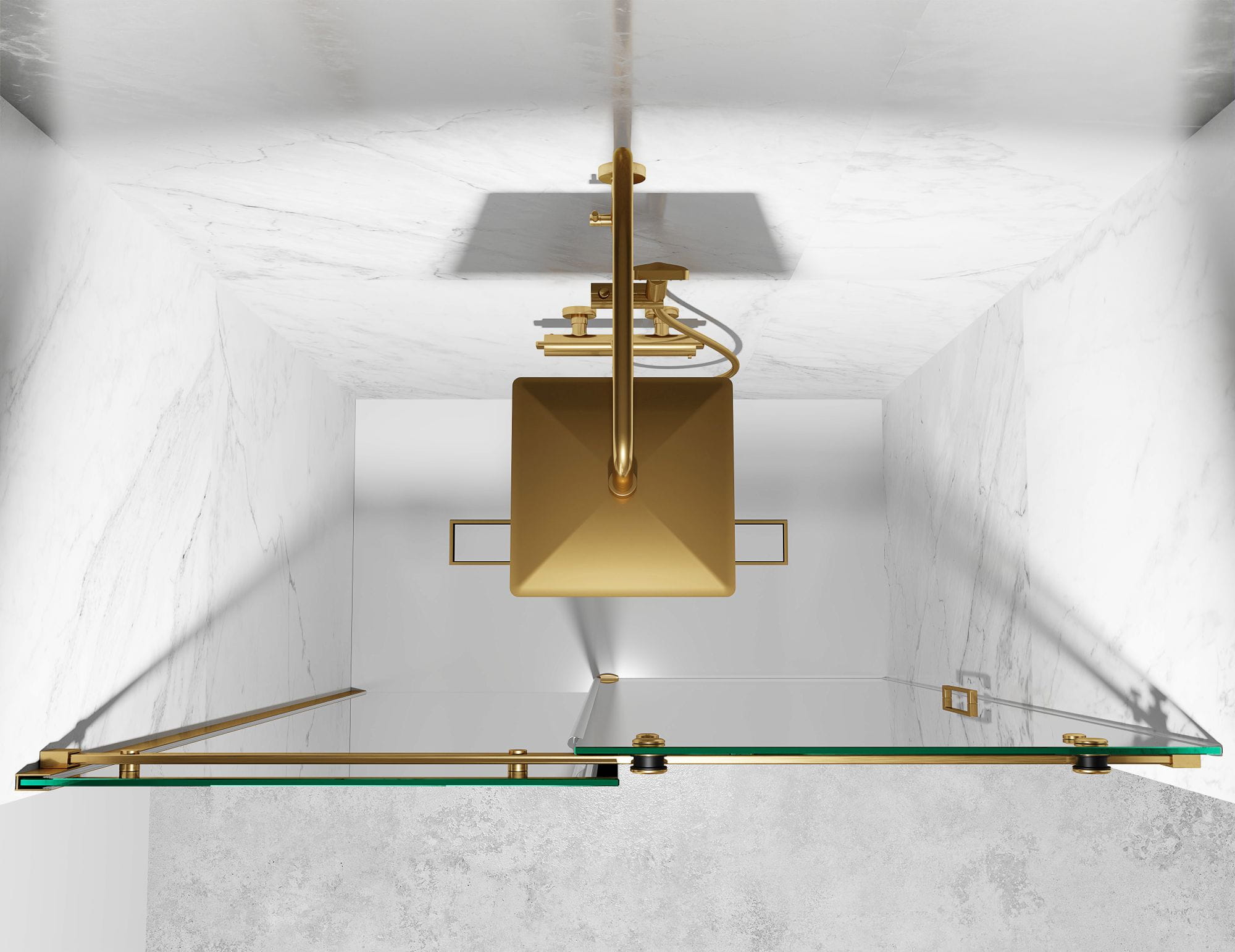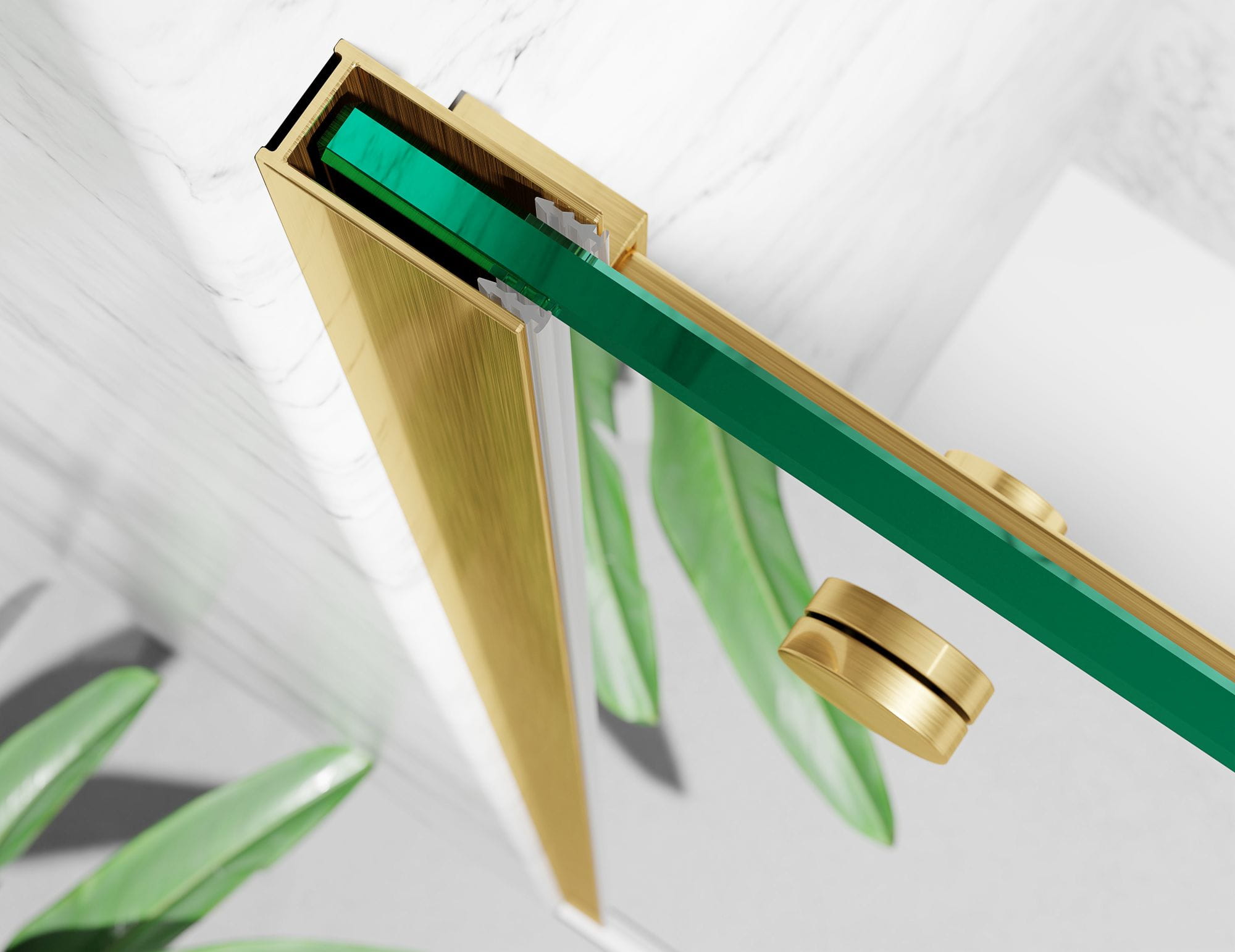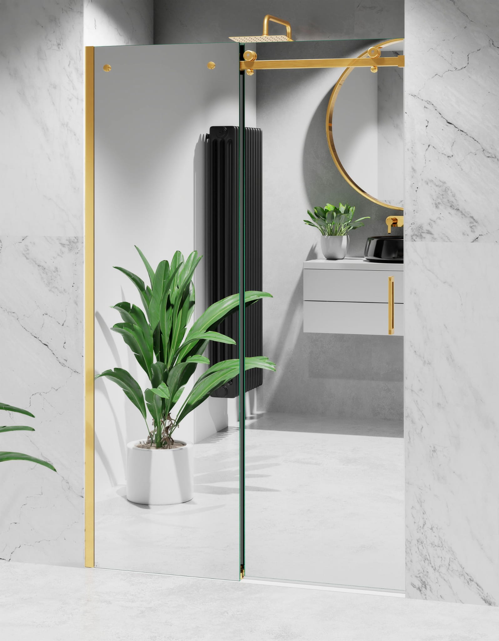 Okucia Złoto Szczotkowane, Szkło Lustrzane, Drzwi Prysznicowe Przesuwne.