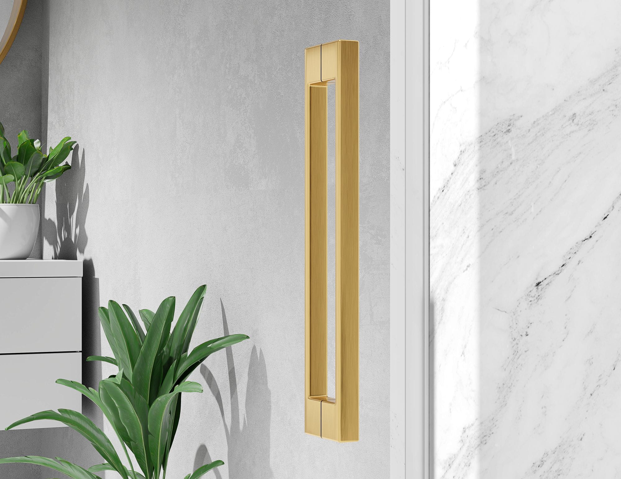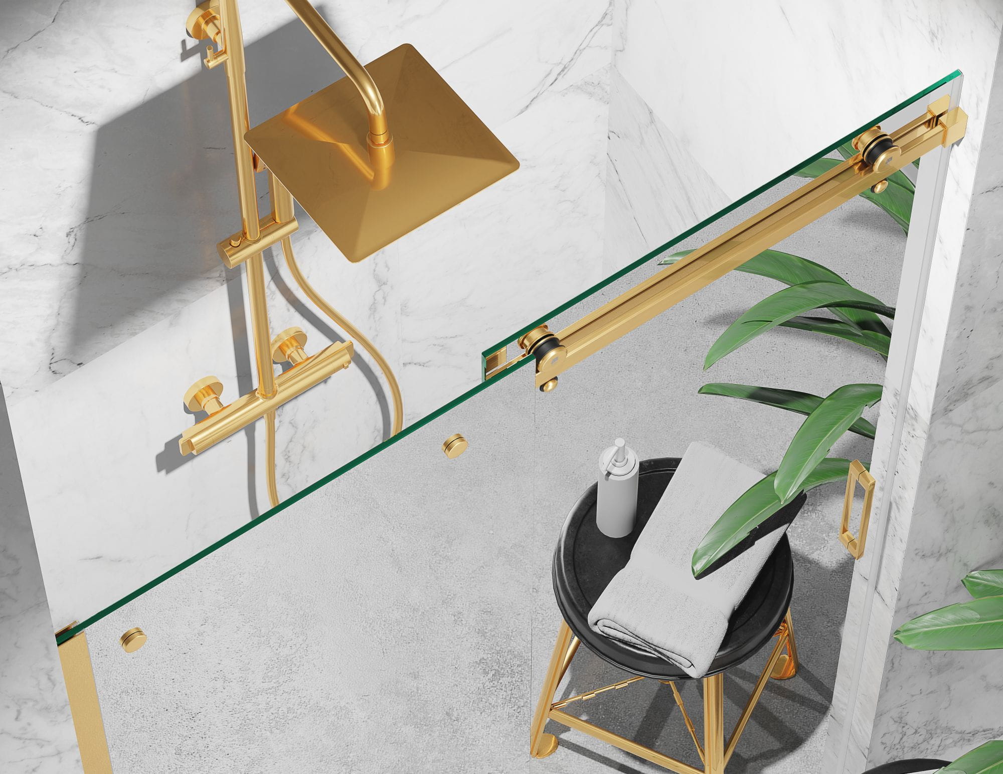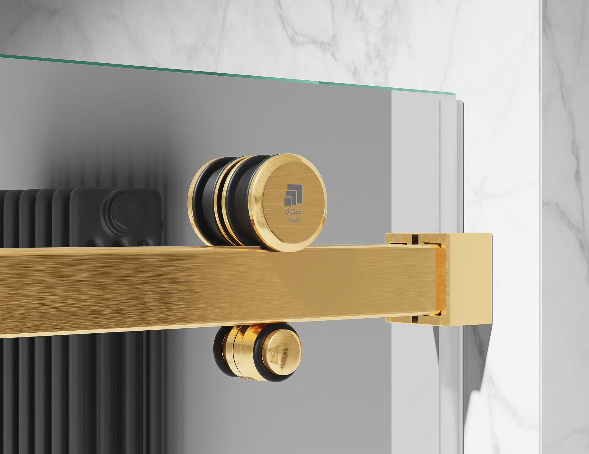 Okucia Złoto Szczotkowane, Szkło Lustrzane, Drzwi Prysznicowe Przesuwne.