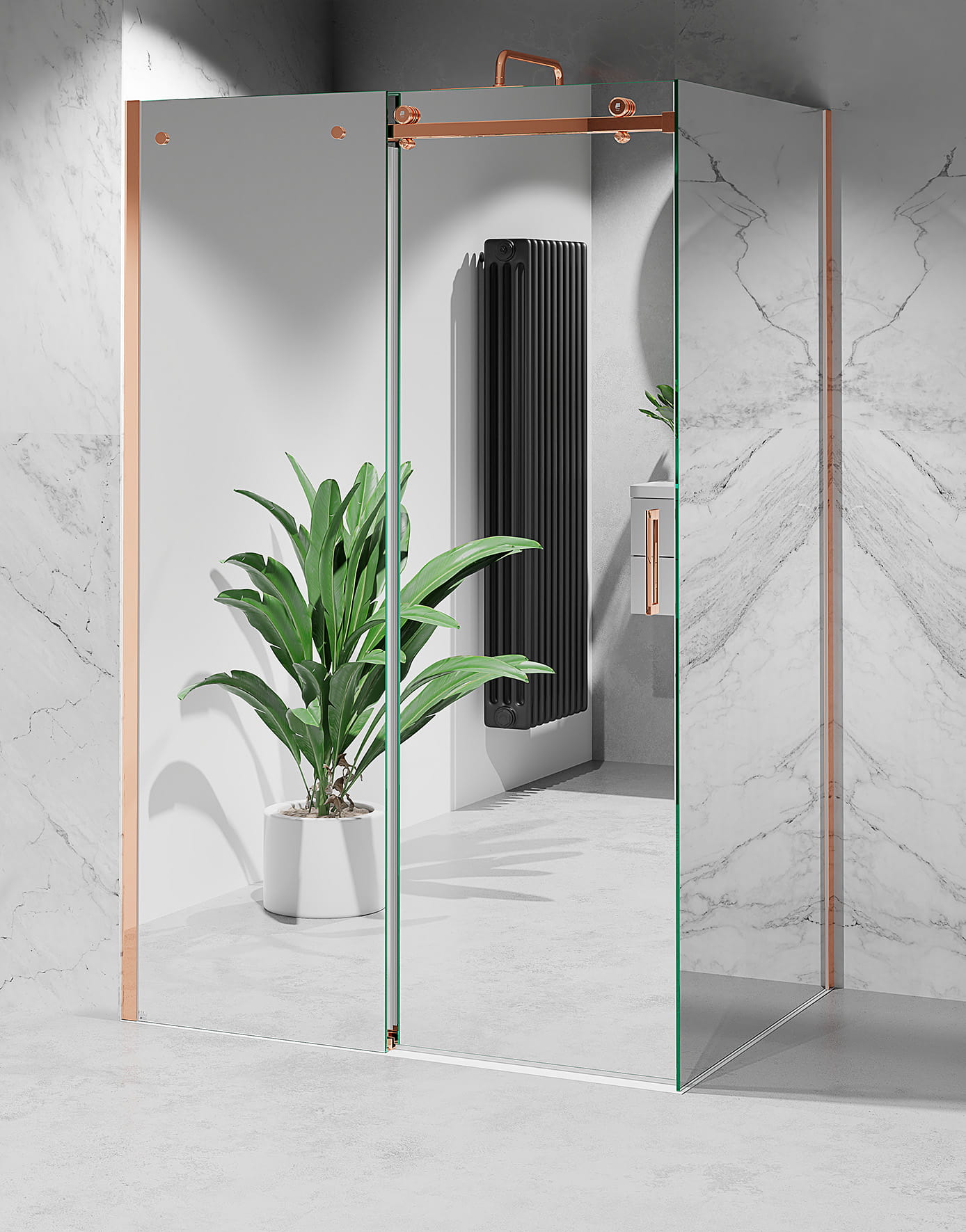 Kabina Prysznicowa Przesuwna, szkło lustrzane, okucia złoty róż