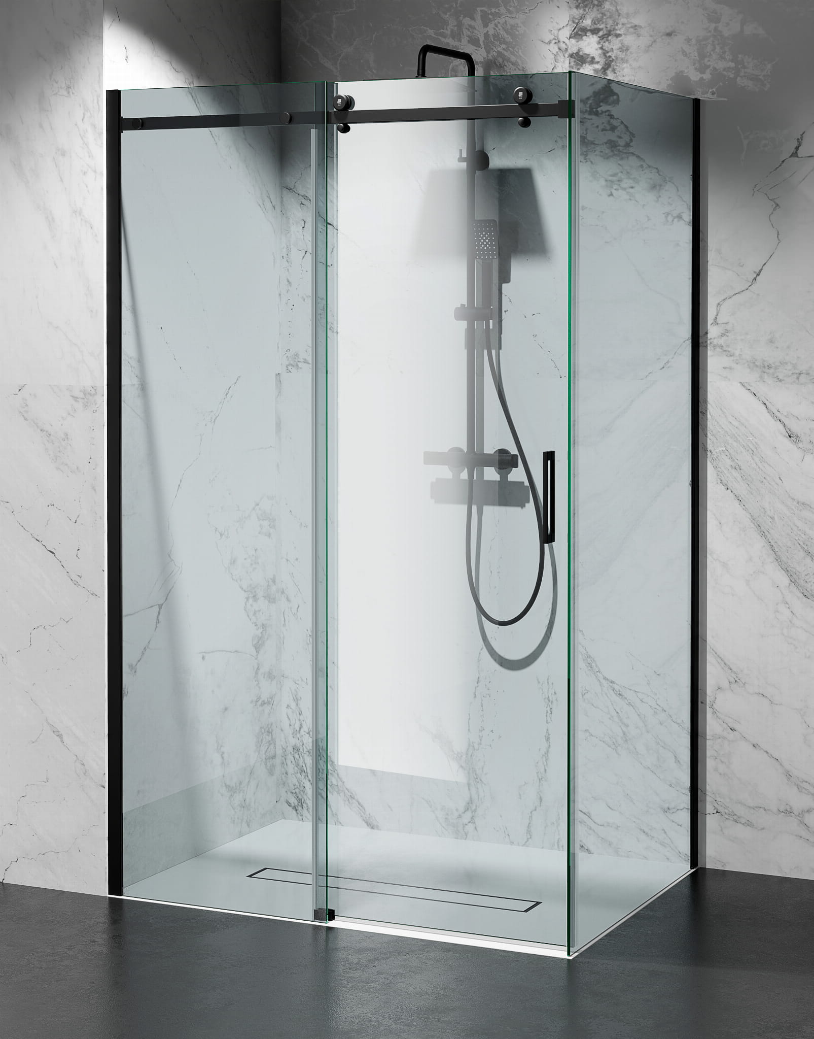 Kabina Prysznicowa Przesuwna, okucia Czarny Mat
