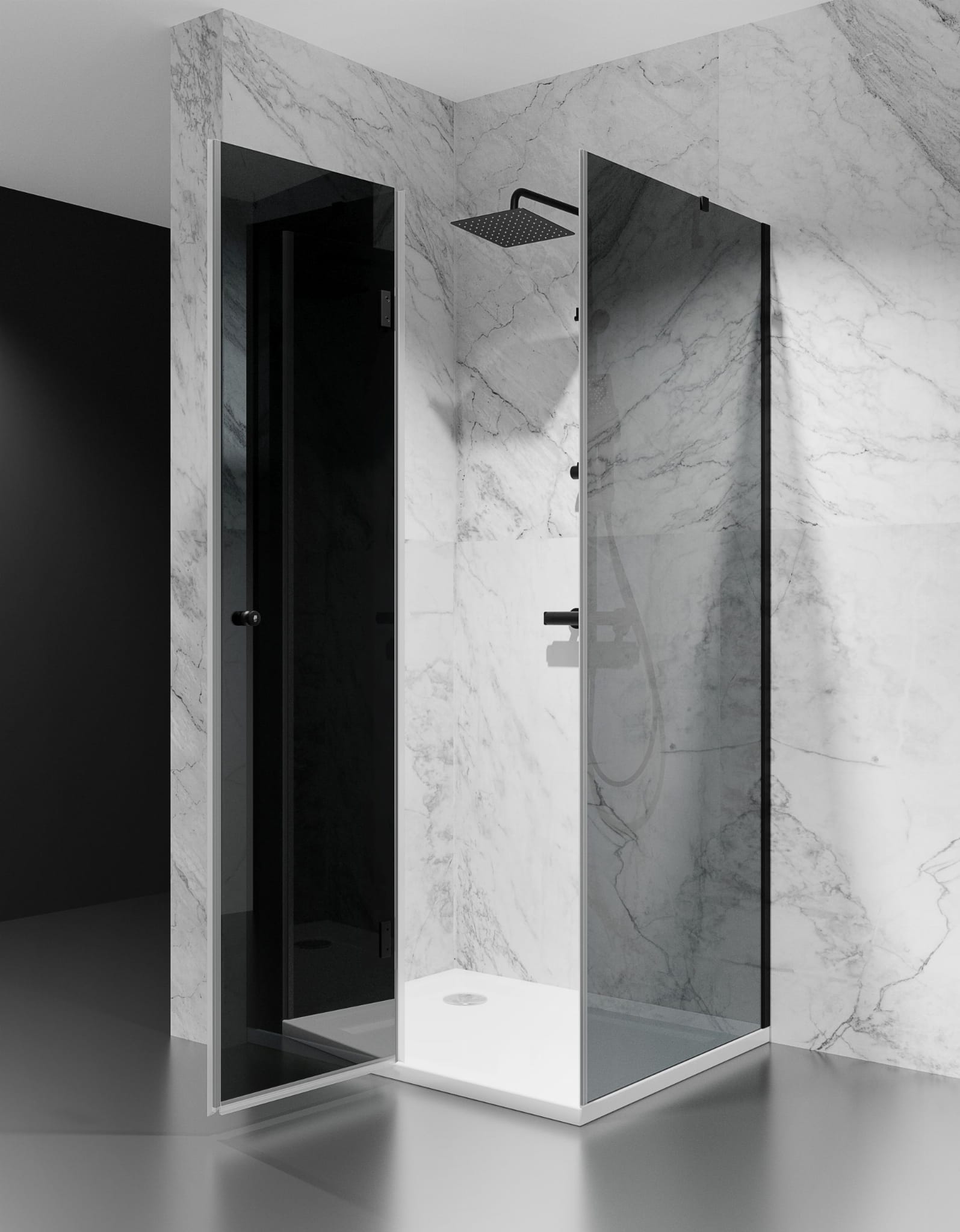 KABINA PRYSZNICOWA UCHYLNA, CZARNE OKUCIA, SZKŁO GRAFITOWE / DYMIONE, MODEL VERTUS DV8000