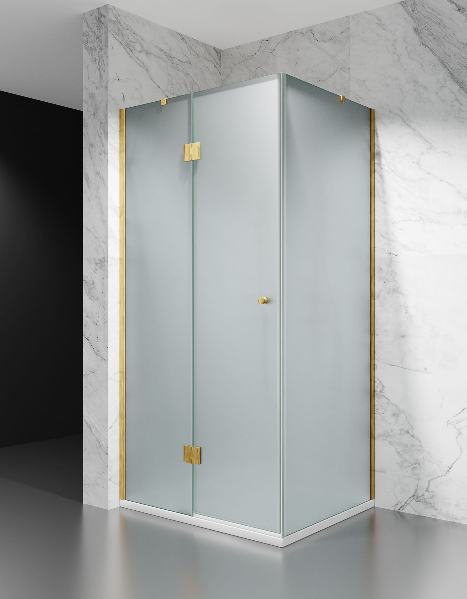 KABINA PRYSZNICOWA UCHYLNA, OKUCIA ZŁOTO SZCZOTKOWANE, SZKŁO MROŻONE / MLECZNE, MODEL VERTUS DV8000