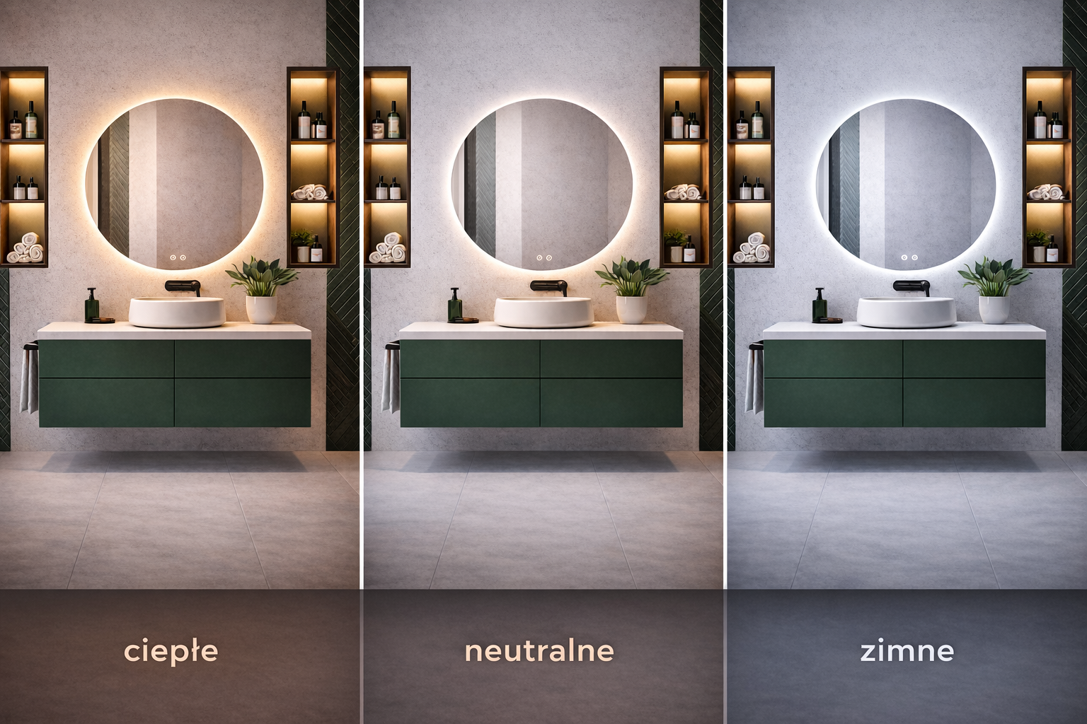 - Temperatura barwowa w opcji bez przycisku na lustrze: światło białe neutralne 5000K