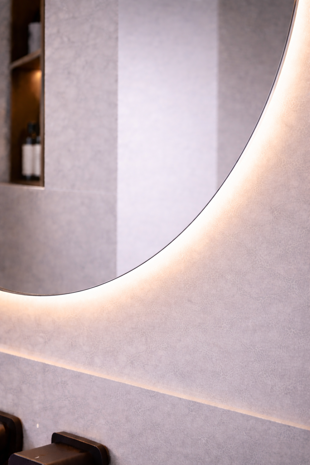 Nasze klasyczne wyjątkowe lustro okrągłe z oświetleniem LED wysokiej jakości produkt wyróżnia się wytrzymałością na przebarwienia, promieniowanie UV oraz dysfunkcje mechaniczne. Posiada ujednoliconą, gładką powierzchnię, która umożliwia łatwy i bezzwłoczny montaż, nie wymagający specjalistycznych narzędzi. Krawędzie są fazowane i polerowane, co zapewnia szlif trapezowy.