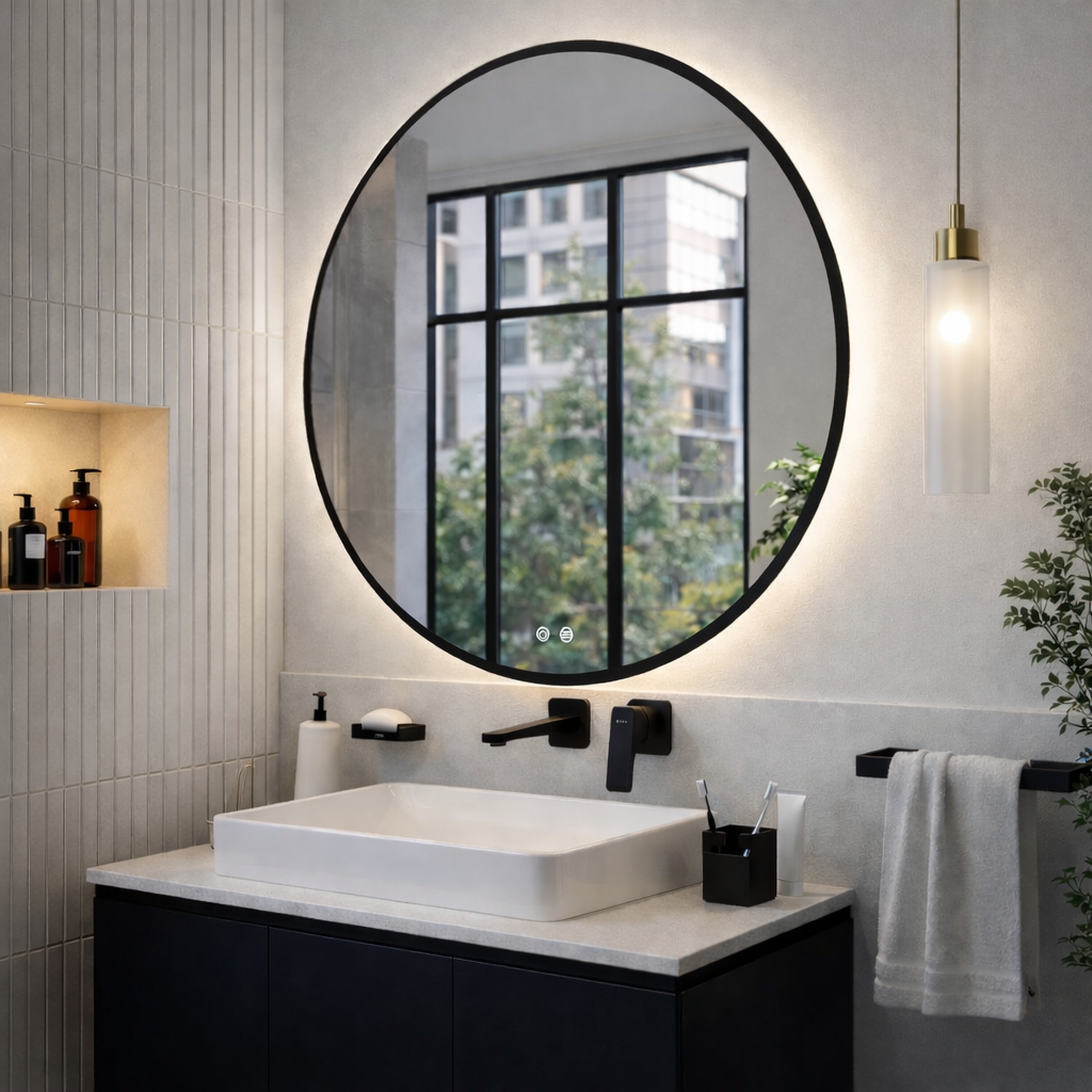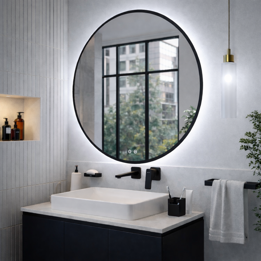 Lustro podświetlane LED okrągłe z czarną ramą