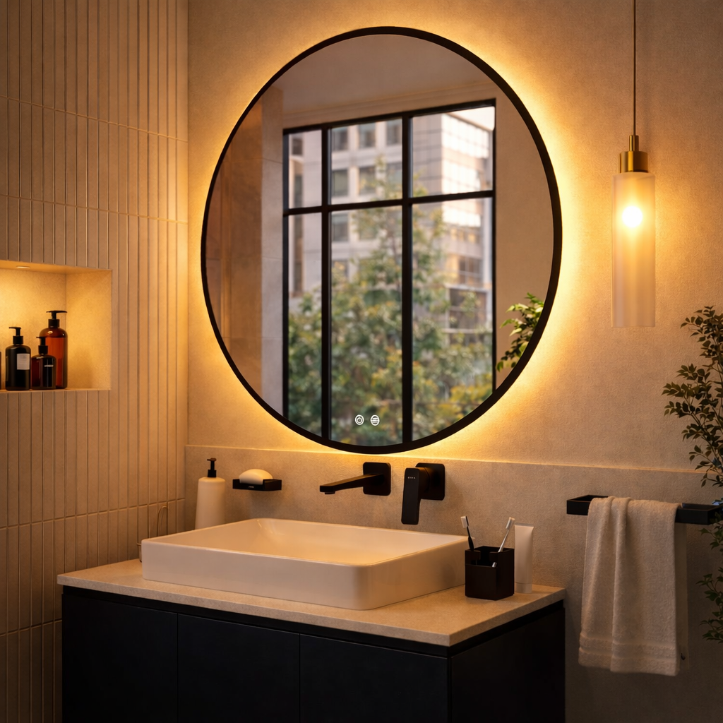 Wszystko zależy od sposobu podłączenia. Jeśli lustro podłączone jest do instalacji razem z głównym oświetleniem łazienki, dodatkowy przycisk nie będzie potrzebny – światło włączy się i wyłączy razem z lampami sufitowymi. Gdy jednak zależy Ci na niezależnym sterowaniu podświetleniem, warto wybrać lustro LED z funkcją przycisku, dzięki czemu możesz korzystać z jego światła niezależnie od reszty oświetlenia w pomieszczeniu.