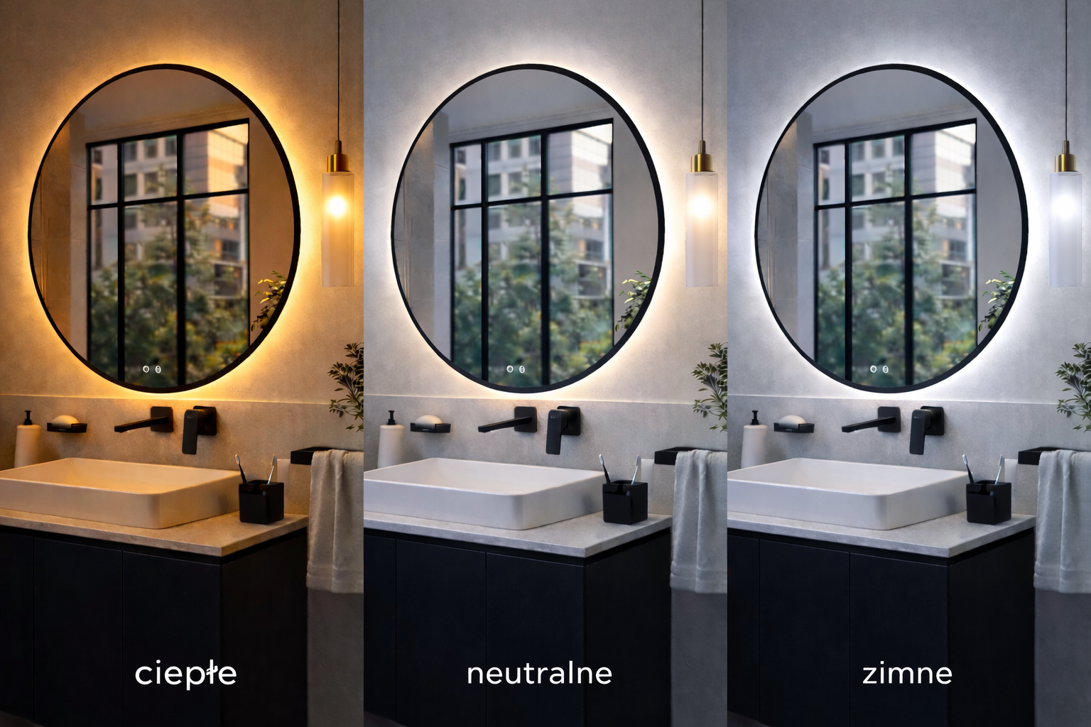 - Temperatura barwowa w opcji bez przycisku na lustrze: światło białe neutralne 5000K