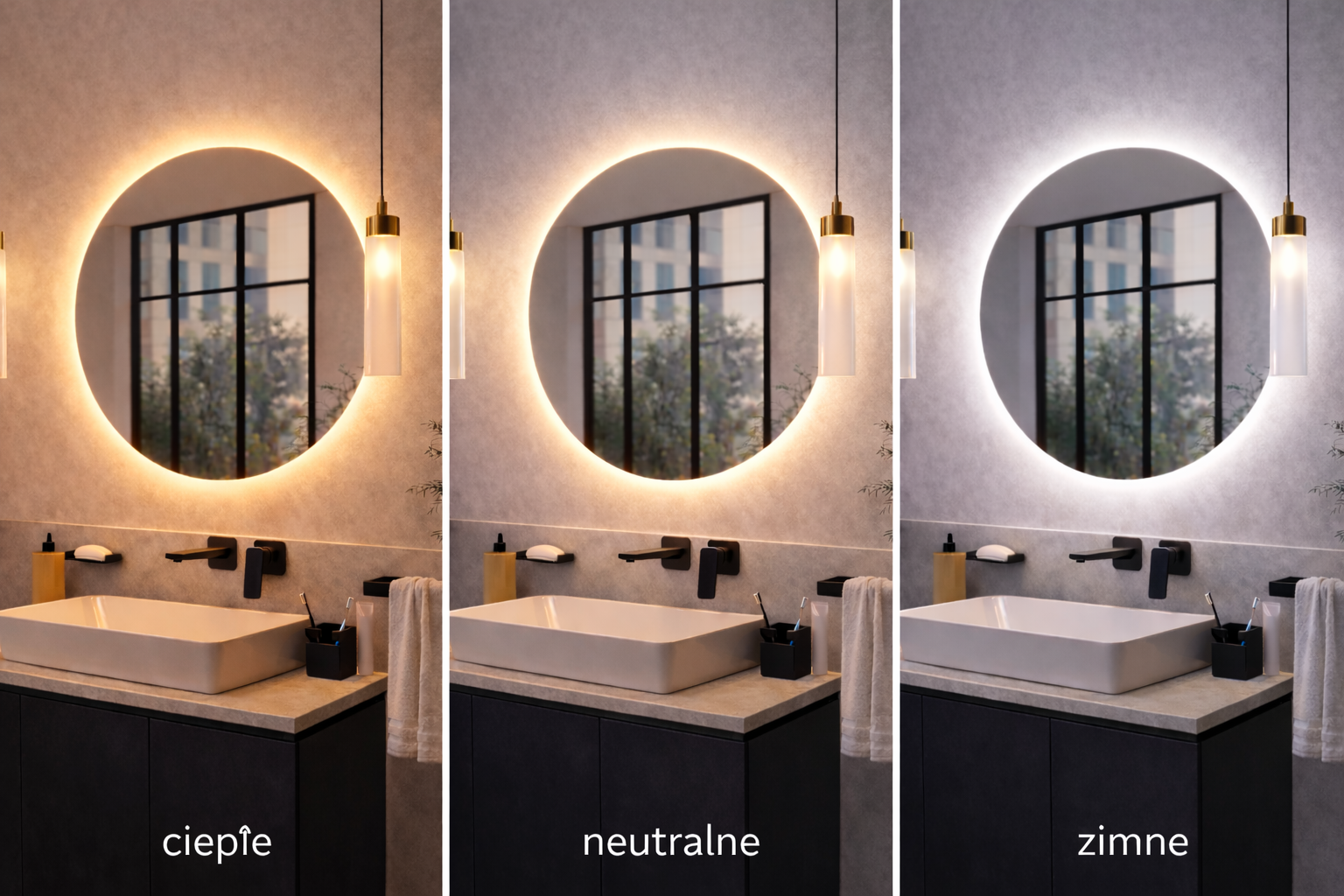 - Temperatura barwowa w opcji bez przycisku na lustrze: światło białe neutralne 5000K