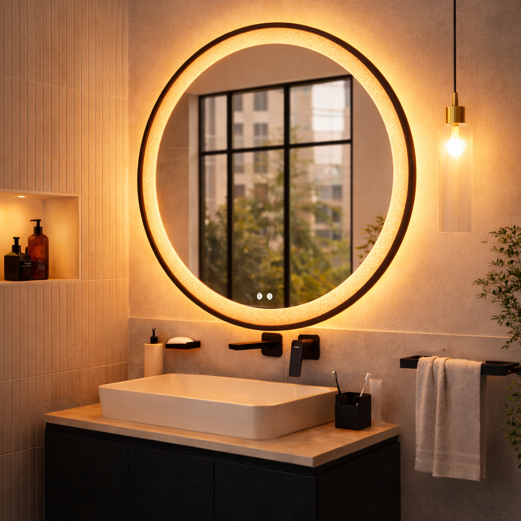 Dzięki zastosowaniu zaawansowanej technologi LED i funkcji dotykowej stworzyliśmy to niezwykłe i luksusowe lustro. To co czyni je wyjątkowym to dotykowy przycisk który umożliwia zmianę koloru światła LED z zimnej na ciepłą. Dostosuj barwę lustra do Swoich potrzeb. Ciepłe odcienie sprawiają,że Twoja przestrzeń stanie się przytulna i relaksująca. Natomiast zimne barwy dodadzą elegancji i nowoczesności.