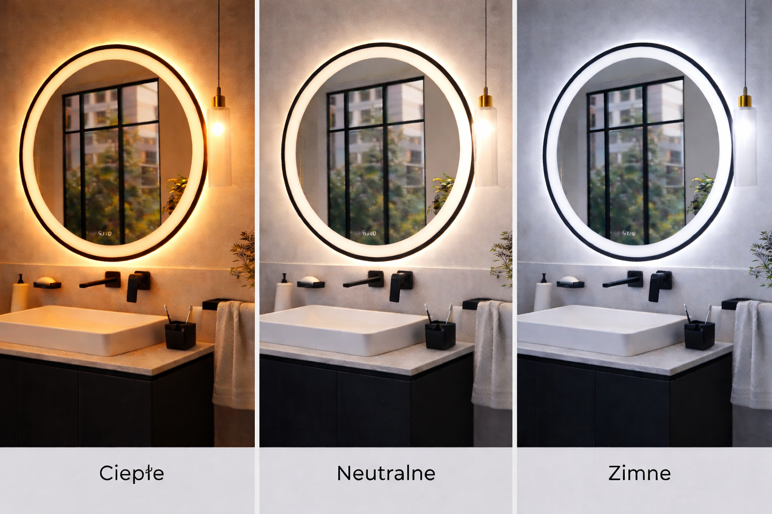 - Temperatura barwowa w opcji bez przycisku na lustrze: światło białe neutralne 5000K