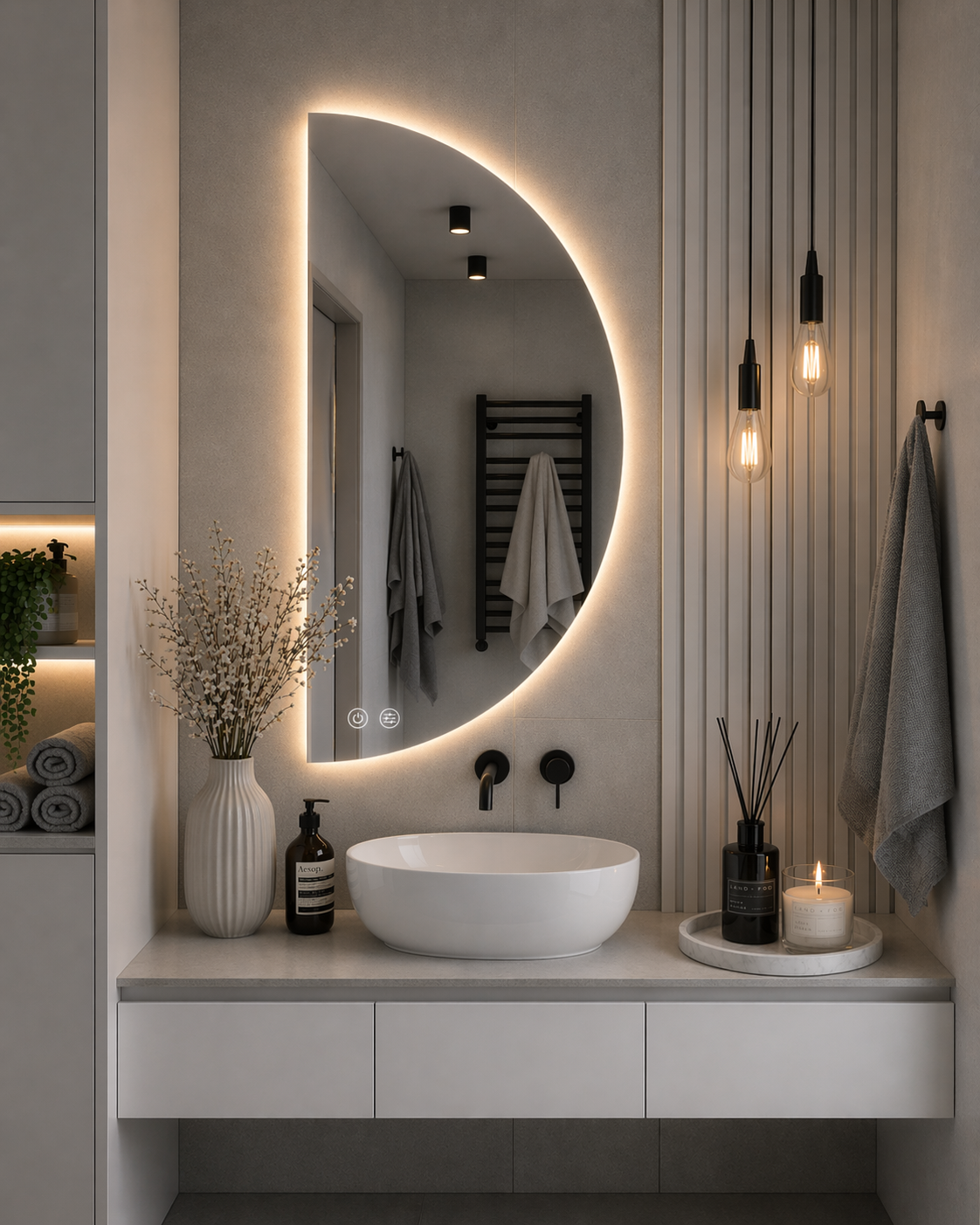 Dzięki zastosowaniu zaawansowanej technologi Led i funkcji dotykowej stworzyliśmy to niezwykłe i luksusowe lustro. To co czyni je wyjątkowym to dotykowy przycisk który umożliwia zmianę koloru światła Led z zimnej na ciepłą. Dostosuj barwę lustra do Swoich potrzeb. Ciepłe odcienie sprawiają,że Twoja przestrzeń stanie się przytulna i relaksująca. Natomiast zimne barwy dodadzą elegancji i nowoczesności.