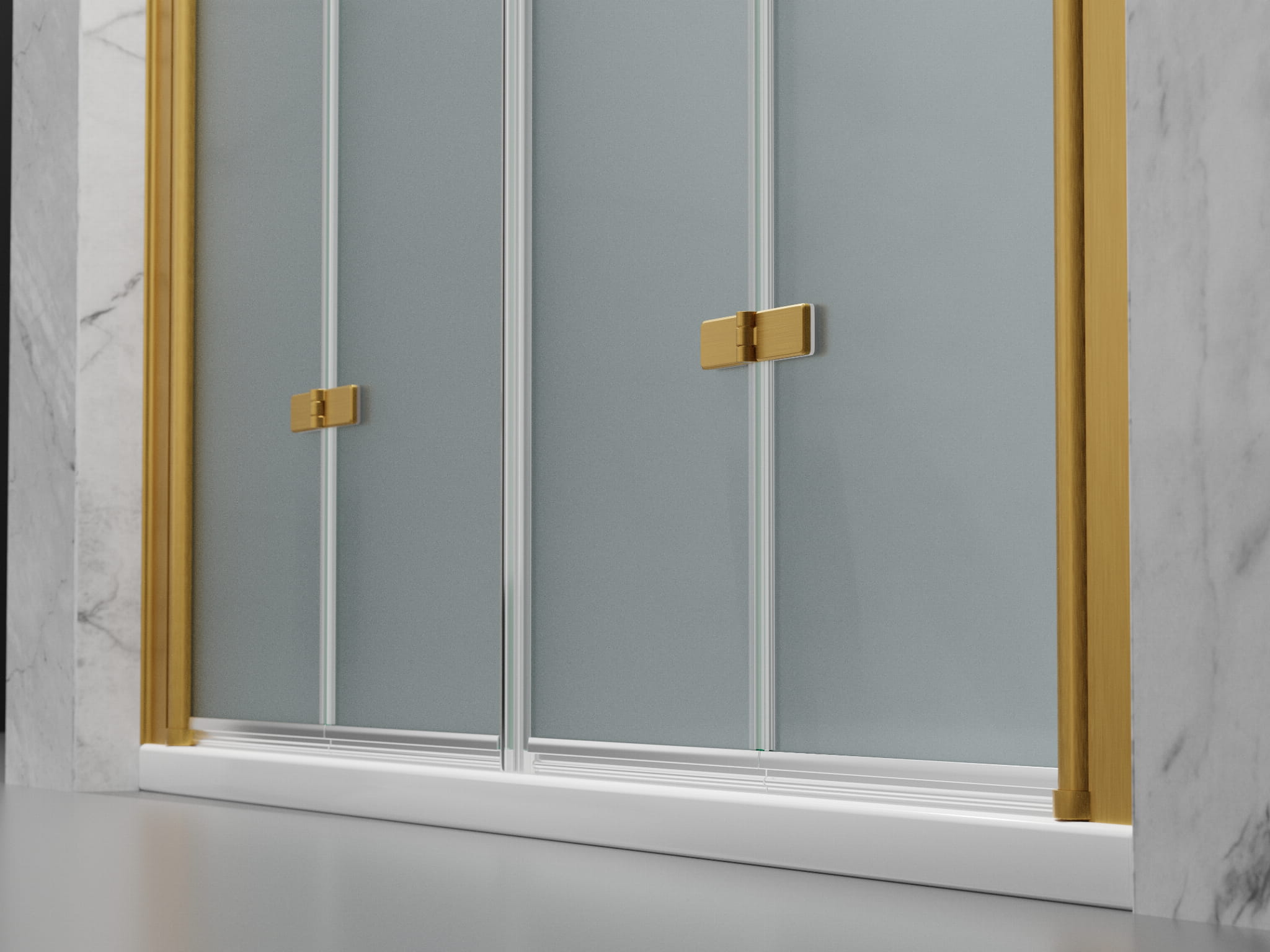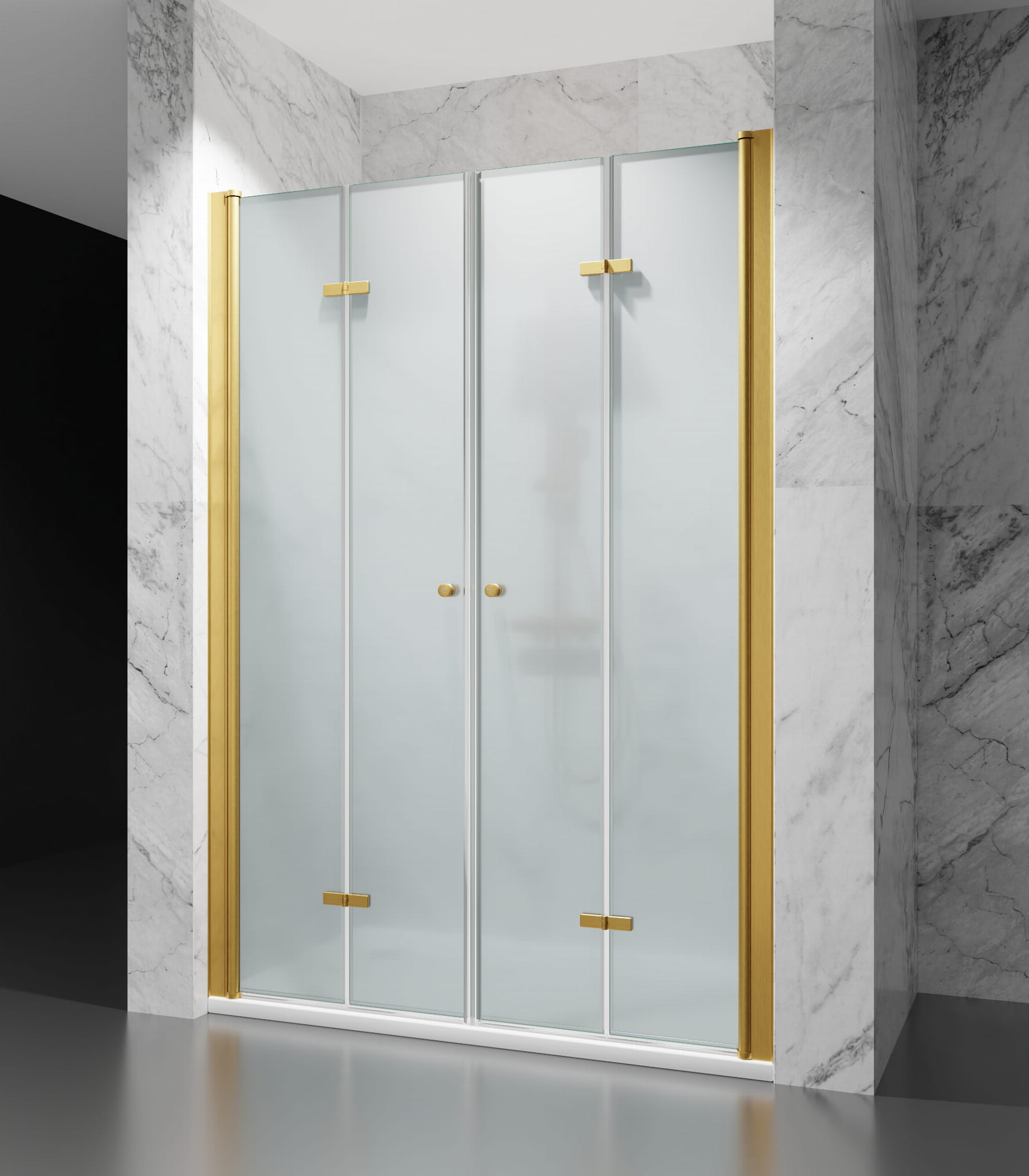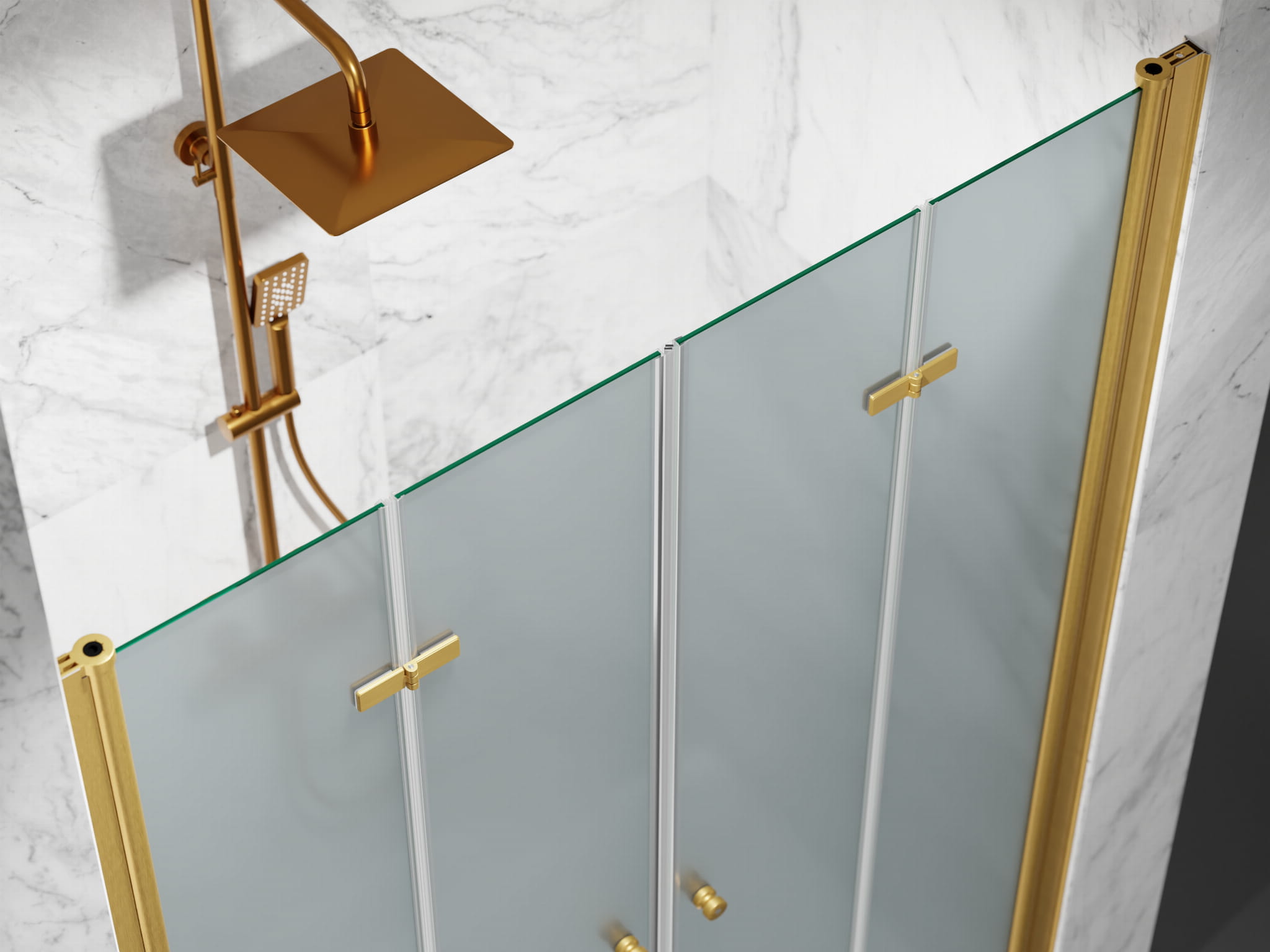 Drzwi Prysznicowe Składane, Okucia Złoty Szczotkowany, Szkło Mrożone D1900 Dual