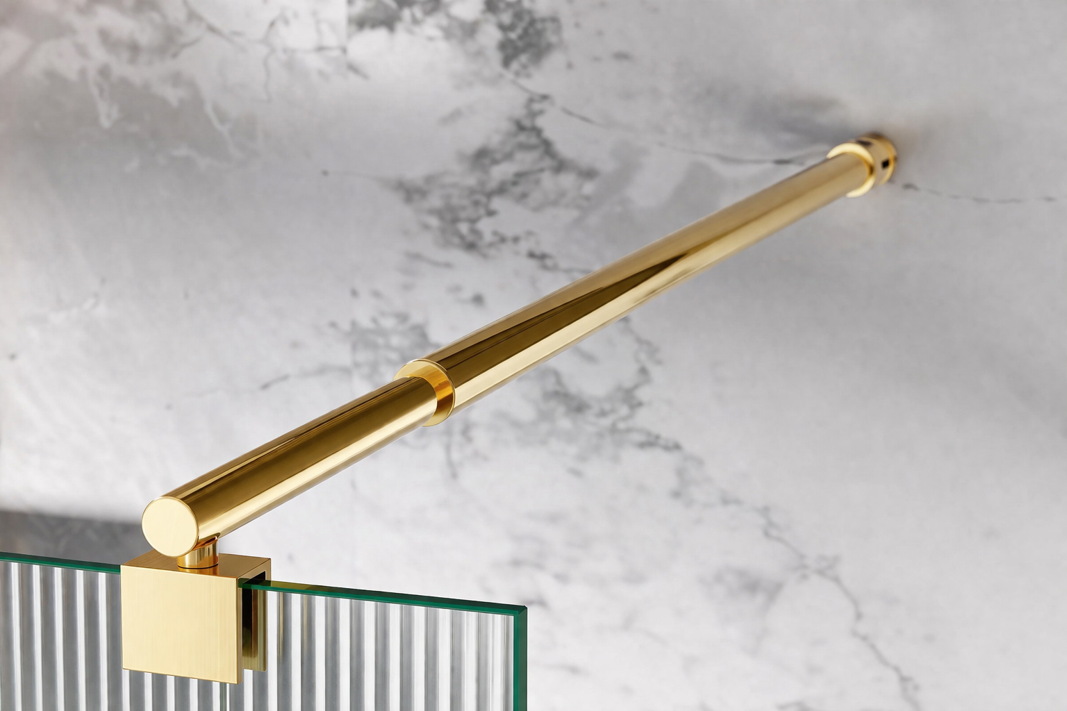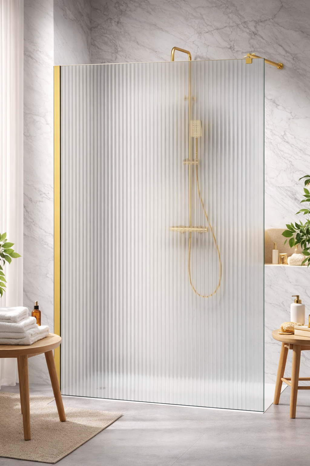 Szyba Prysznicowa Szkło Ryflowane, okucia Złoty Połysk