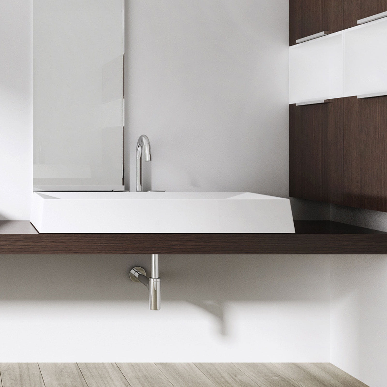 Ekskluzywna umywalka nablatowa wykonana z materiału kompozytowego, zawierającego aż 75% naturalnego, zmielonego marmuru, zapewniającego trwałą i wytrzymałą konstrukcję. W potocznym nazewnictwie kompozyt bywa nazywany również jako konglomerat lub lany marmur.