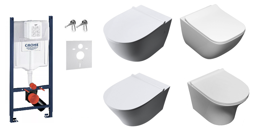 Zestaw podtynkowy: stelaż GROHE, misa WC serii Tornado, deska wolnoopadająca, mata oraz wsporniki dystansowe