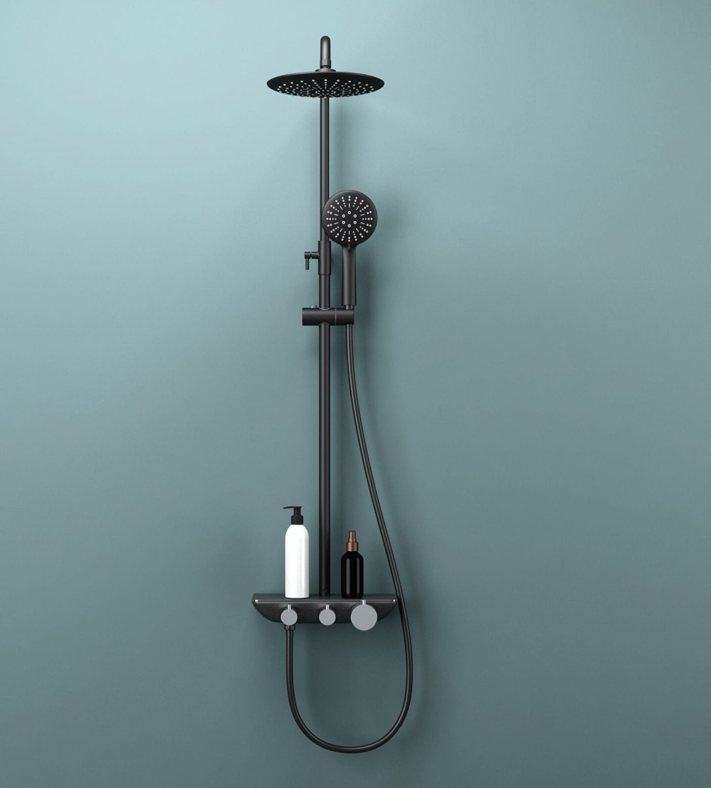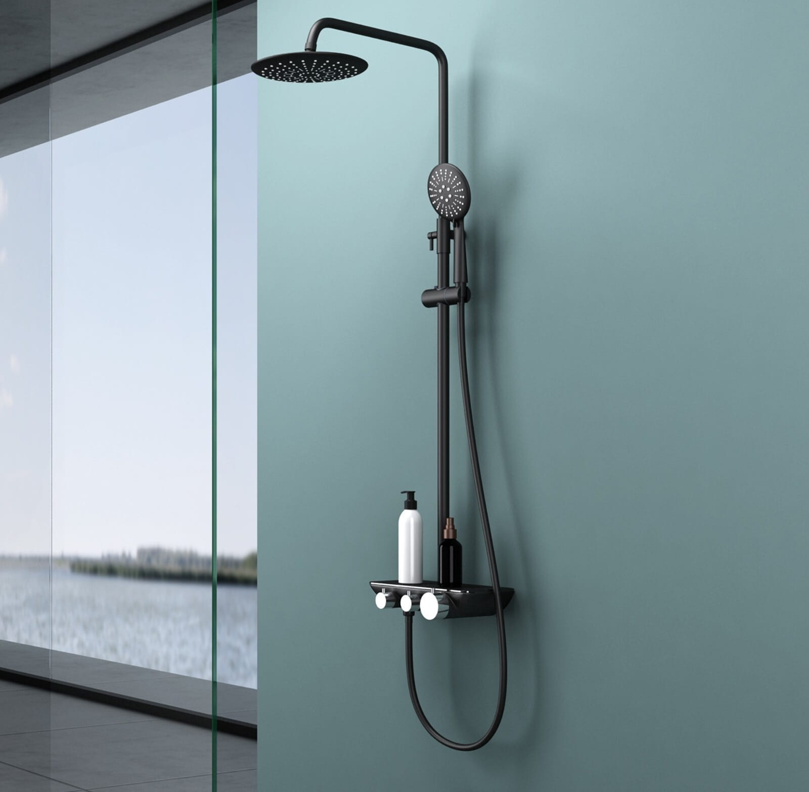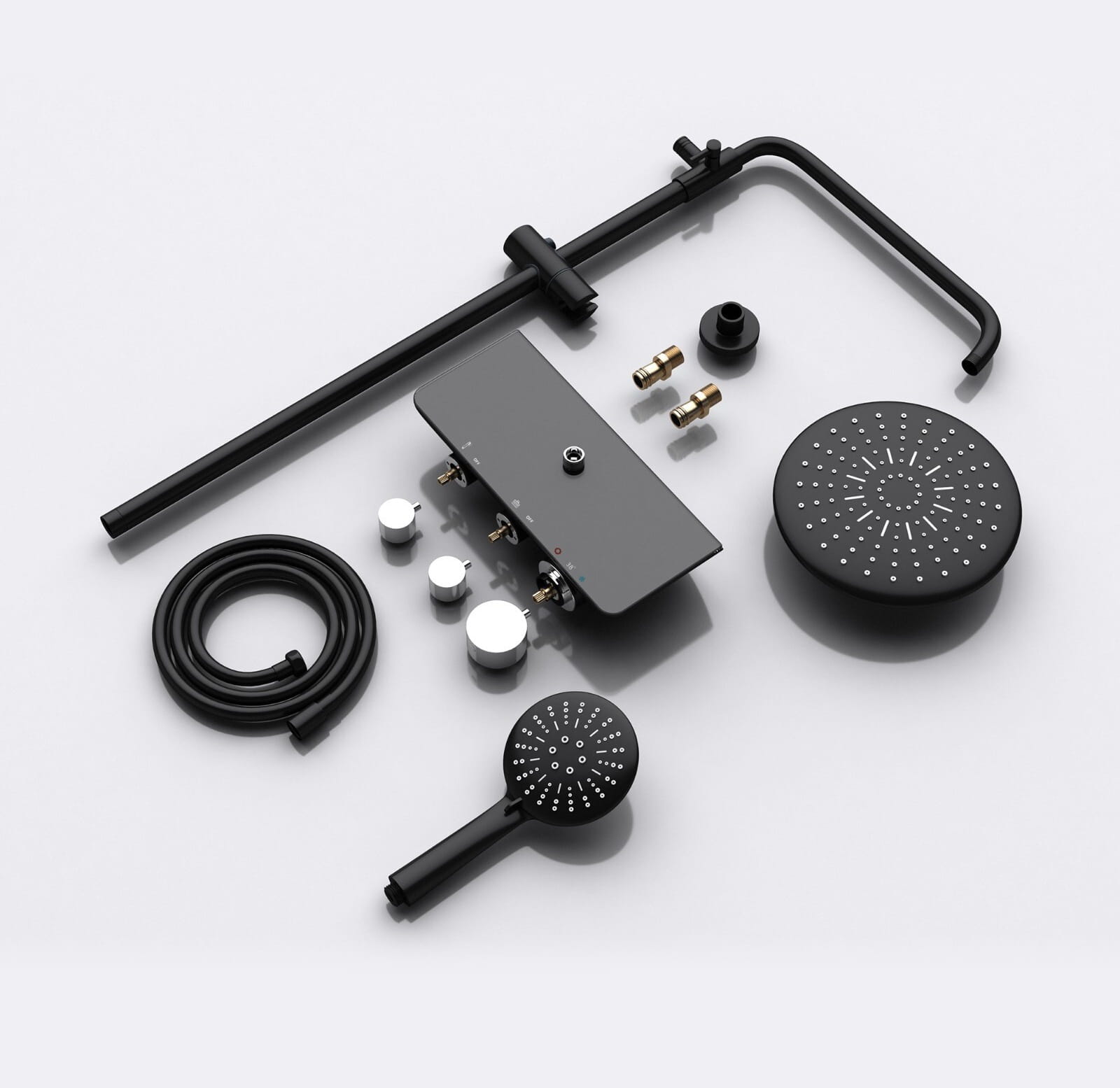 Zestaw Prysznicowy Natynkowy Termostatyczny Czarny CT052T