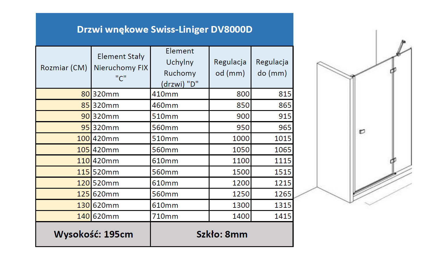 DRZWI PRYSZNICOWE UCHYLNE ZE ŚCIANKĄ DV8500D