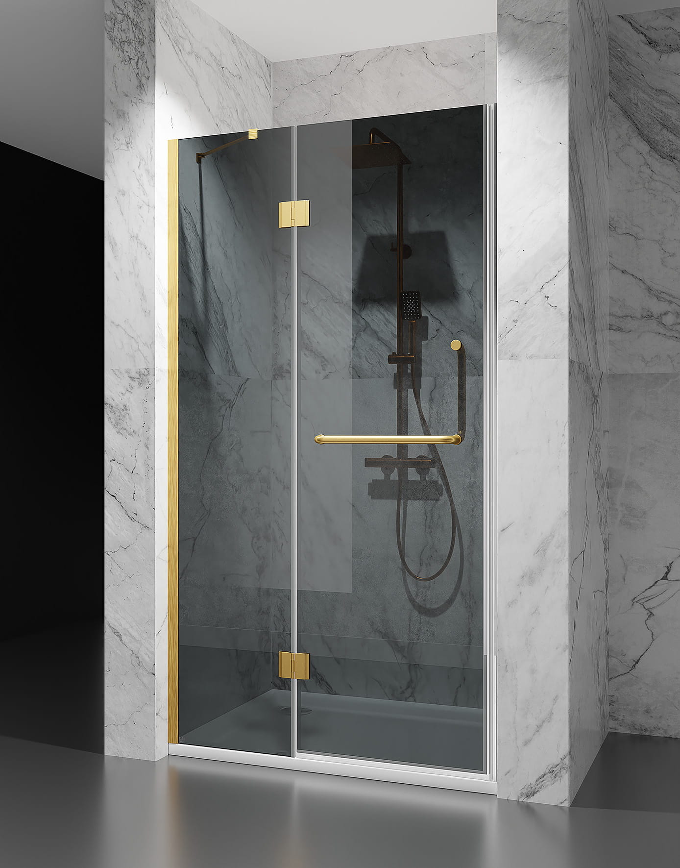 Drzwi Prysznicowe Uchylne , szkło Grafitowe, okucia Złoty Mat DV8500D
