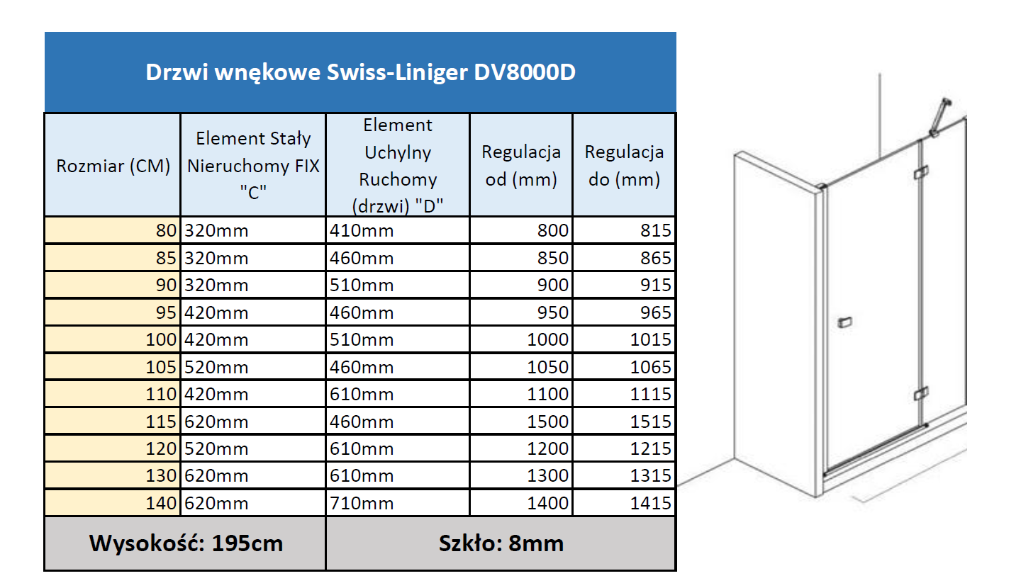 SPECYFIKACJA DRZWI PRYSZNICOWYCH UCHYLNYCH: