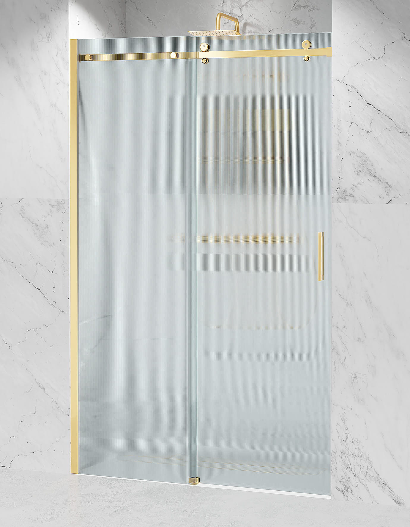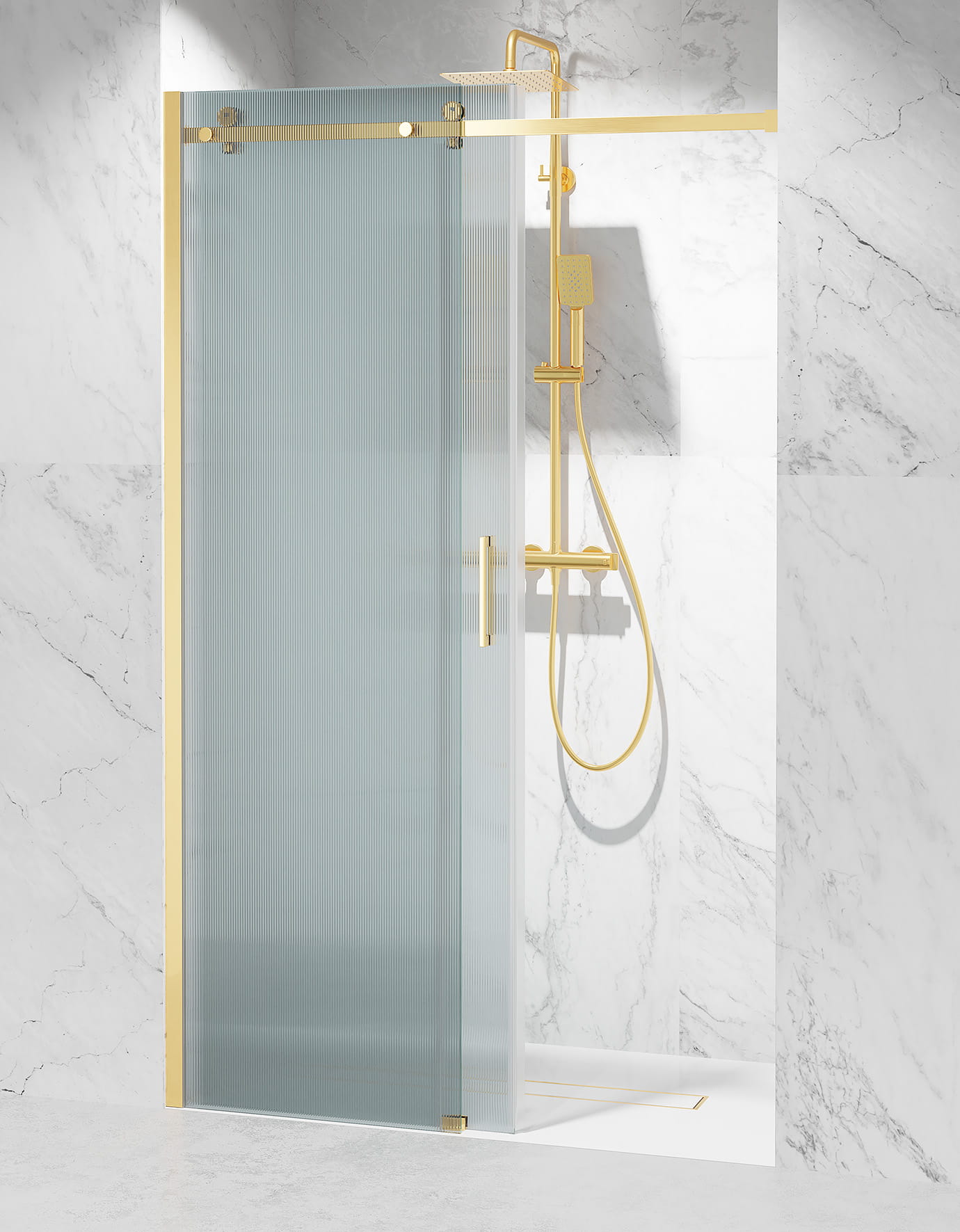 Drzwi Prysznicowe przesuwne D20, Okucia Złoty Szczotkowany, Szkło Ryflowane