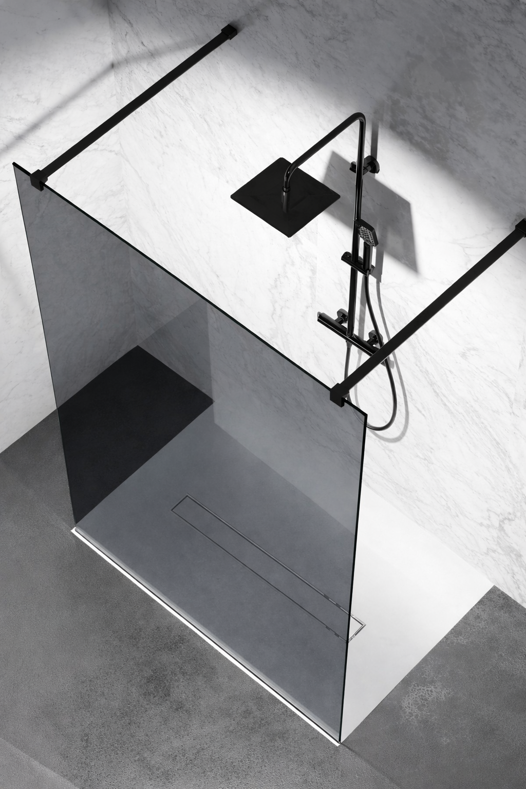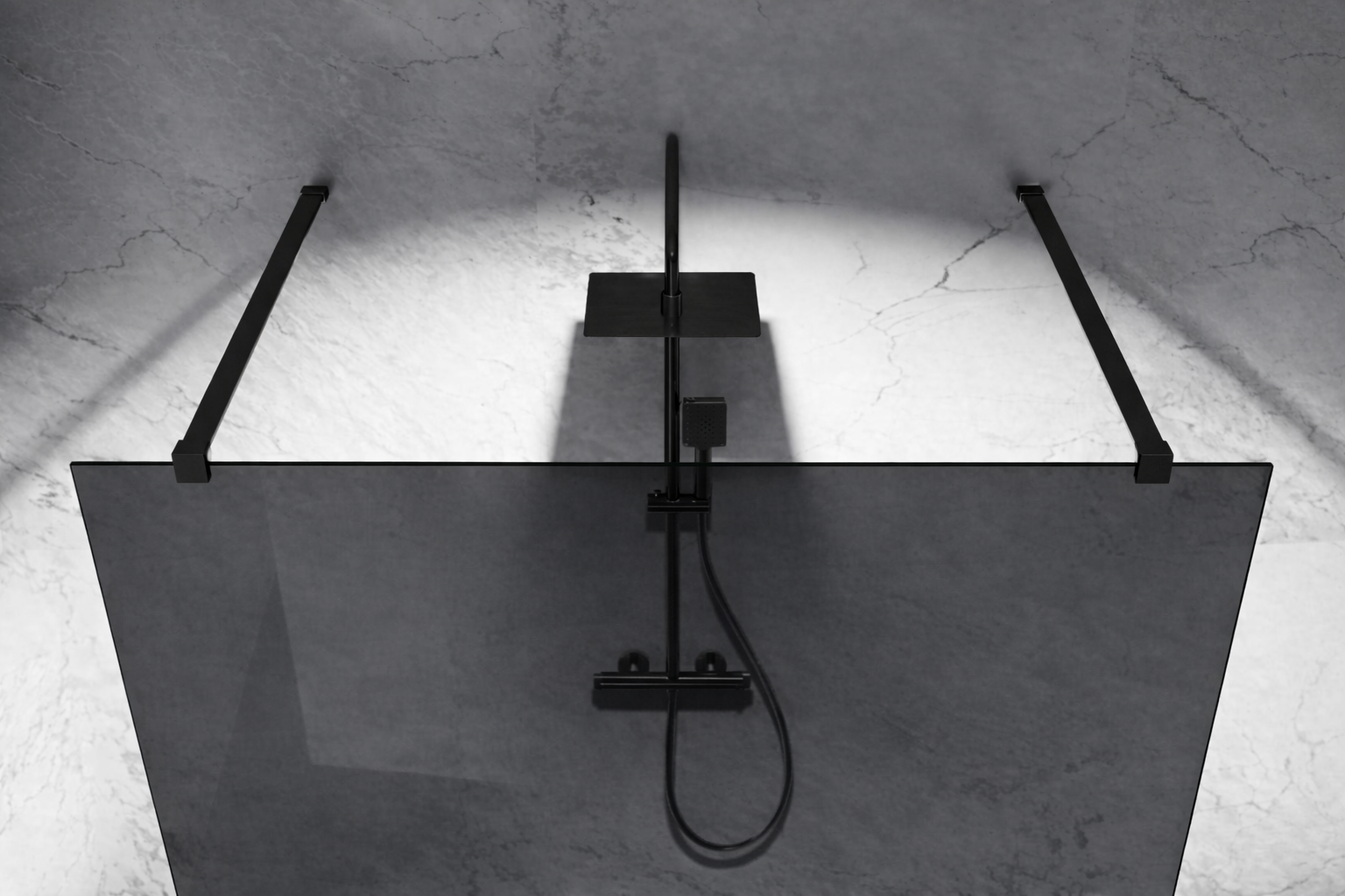 Grafitowa Szyba prysznicowa Wolnostojąca Walk-In okucia czarny mat