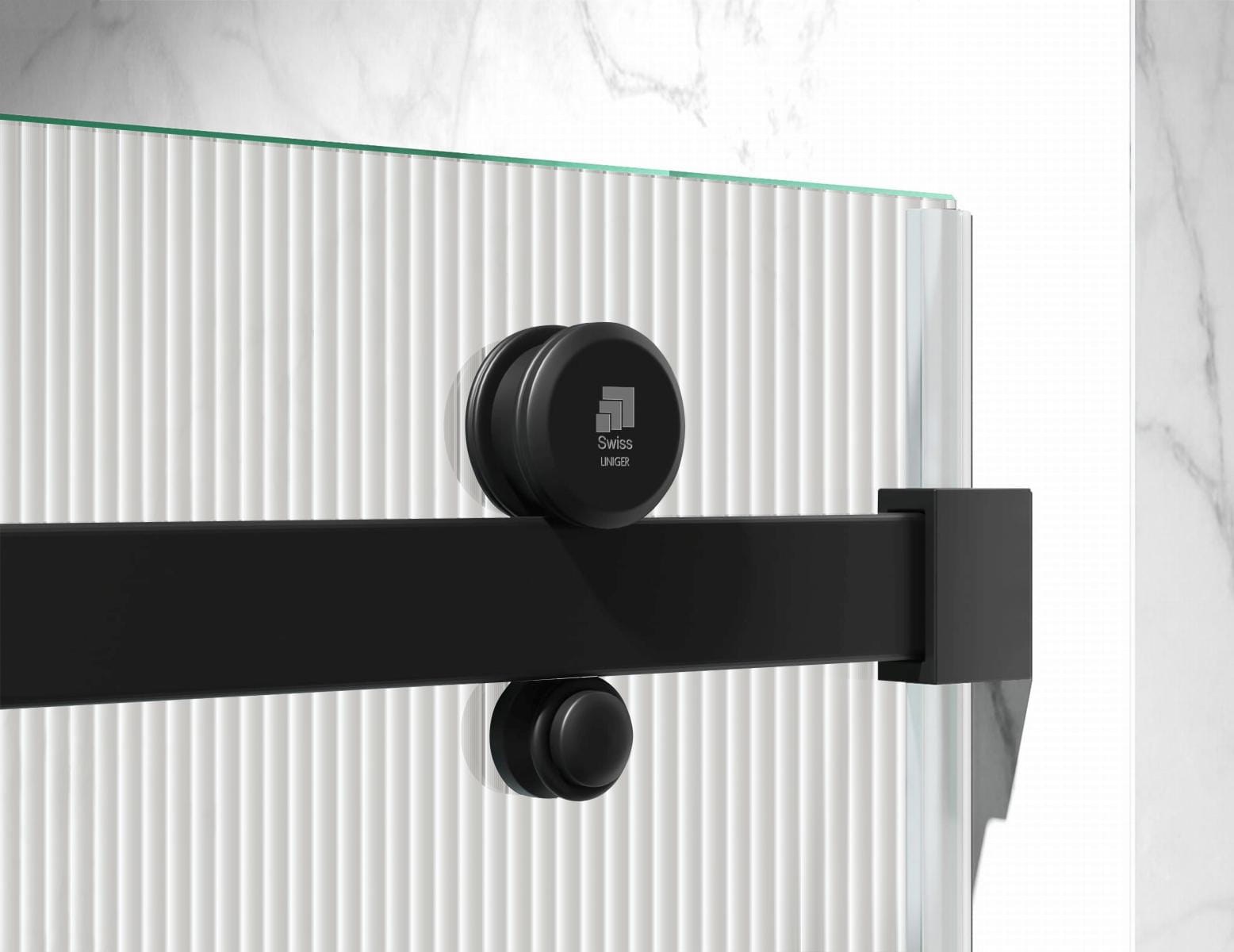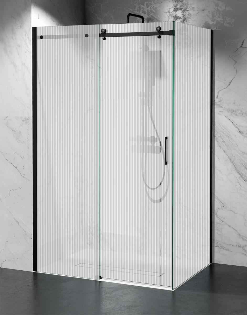 Kabina Prysznicowa Przesuwna C20, Okucia Czarny Mat, Szkło Ryflowane 8mm