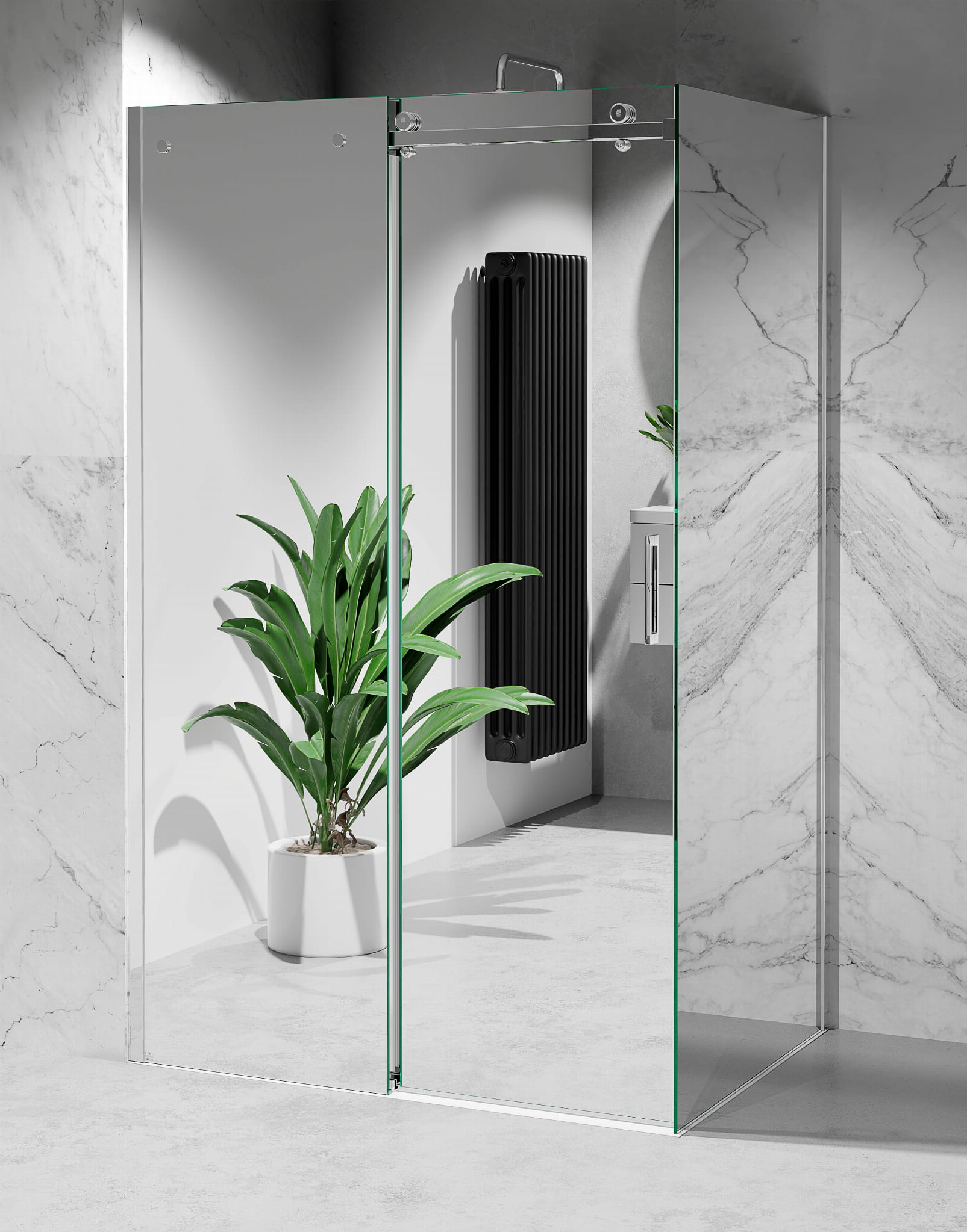Kabina Prysznicowa Przesuwna Szkło EFEKT LUSTRA, okucia Chrom Połysk