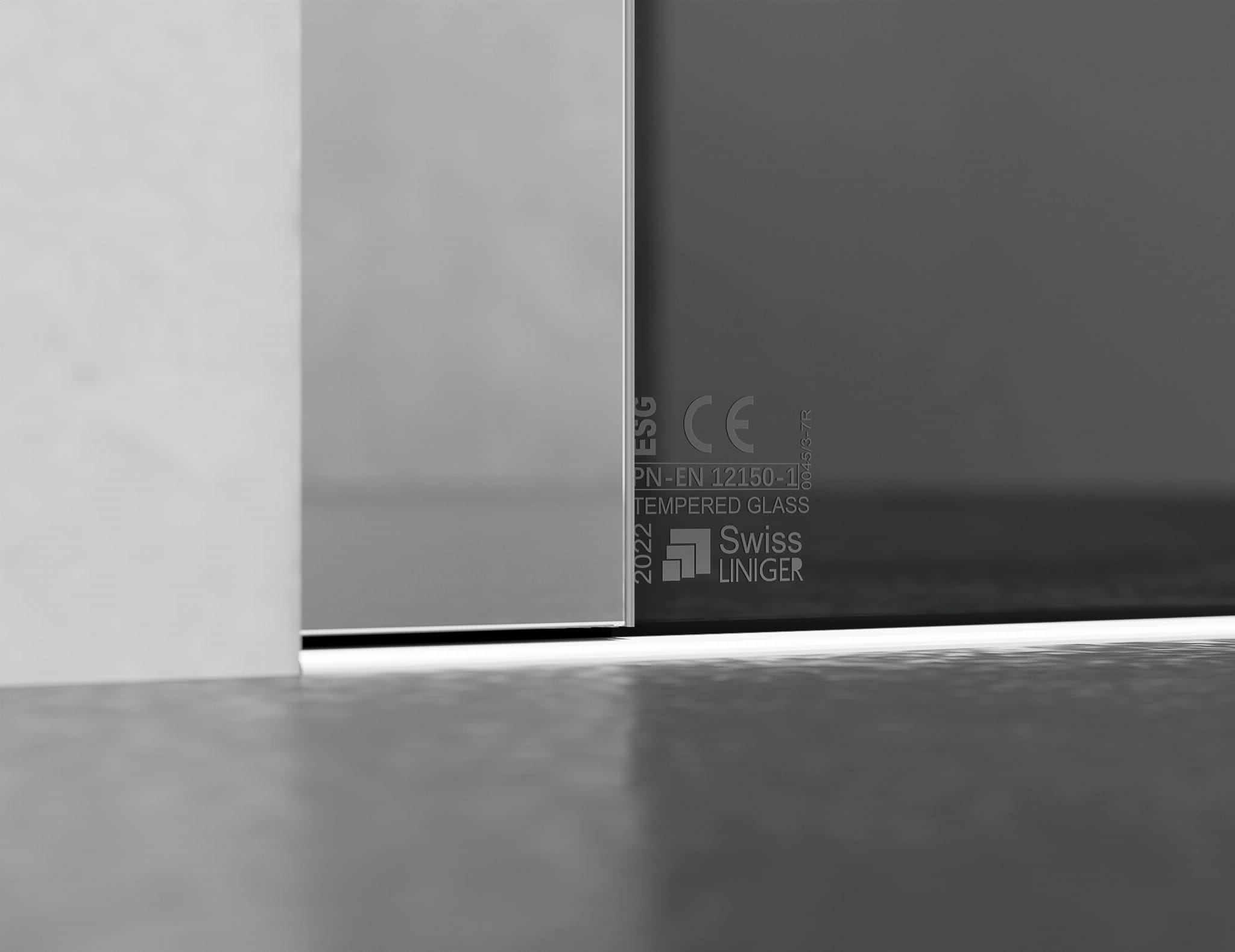 Kabina prysznicowa przesuwna wykonana jest ze szkła wykonanego w technologii podwójnego hartu. Jest to specjalny proces, mający na celu uzyskanie maksymalnej odporności szkła na mechaniczne uszkodzenia. Kabina prysznicowa przesuwna wykonana z takiego szkła daje maksymalne bezpieczeństwo swoim użytkownikom. Nasze kabiny prysznicowe produkujemy ze szkła o grubości 8mm. Jest to polskie szkło pochodzące z huty szkła z Sandomierza. Nasze kabiny przechodzą wyjątkowo rygorystyczne testy jakościowe, które zostały wdrożone pod okiem marki Swiss-Liniger. Nasze kabiny nie są pofalowane, szkło jest diamentowo czyste bez przebarwień i zanieczyszczeń. Kupując u nas, nabywasz produkt premium od polskiego producenta kabin Glassberg.
