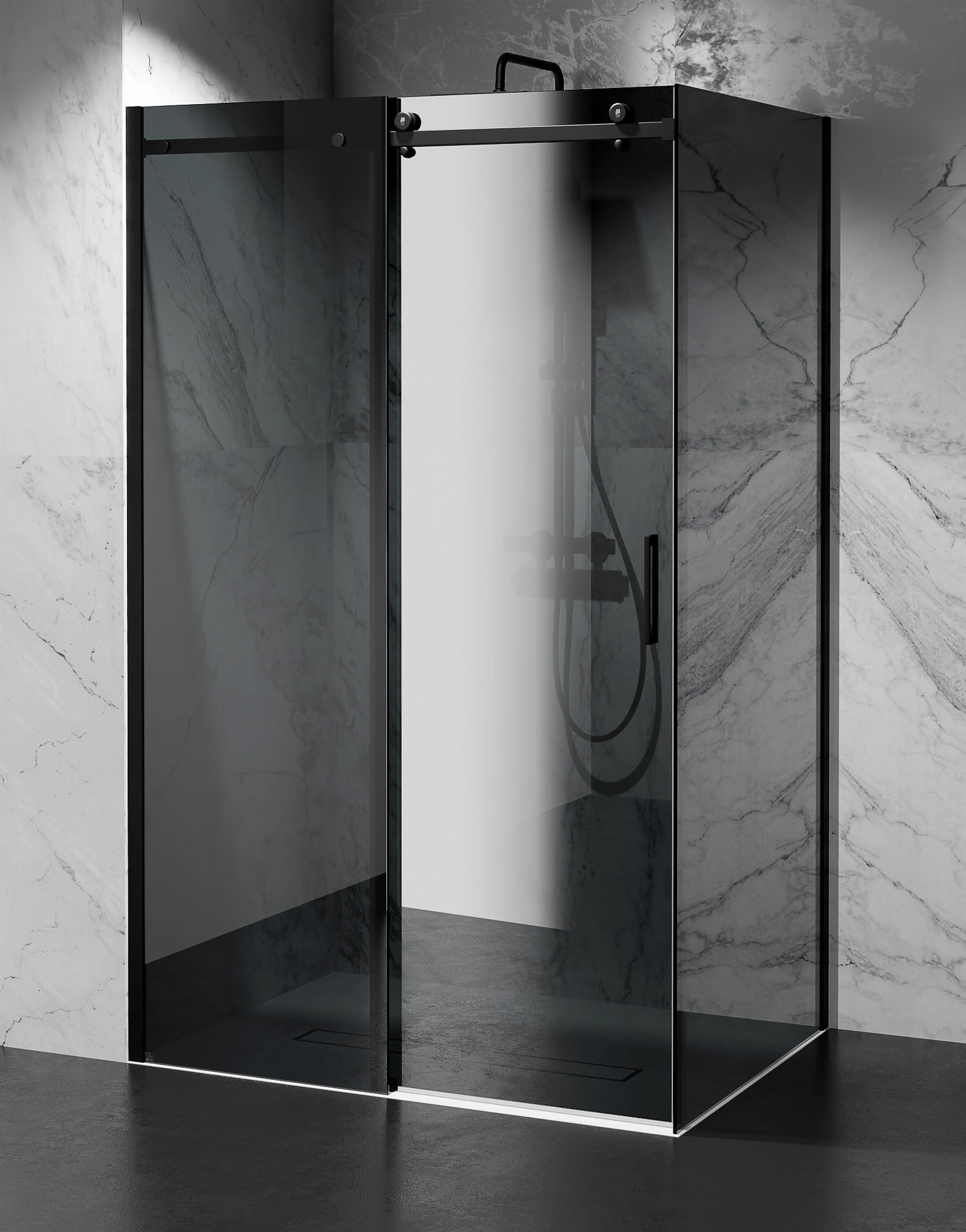 Kabina Prysznicowa Przesuwna Szkło Grafitowe Dymione, okucia Czarny Mat