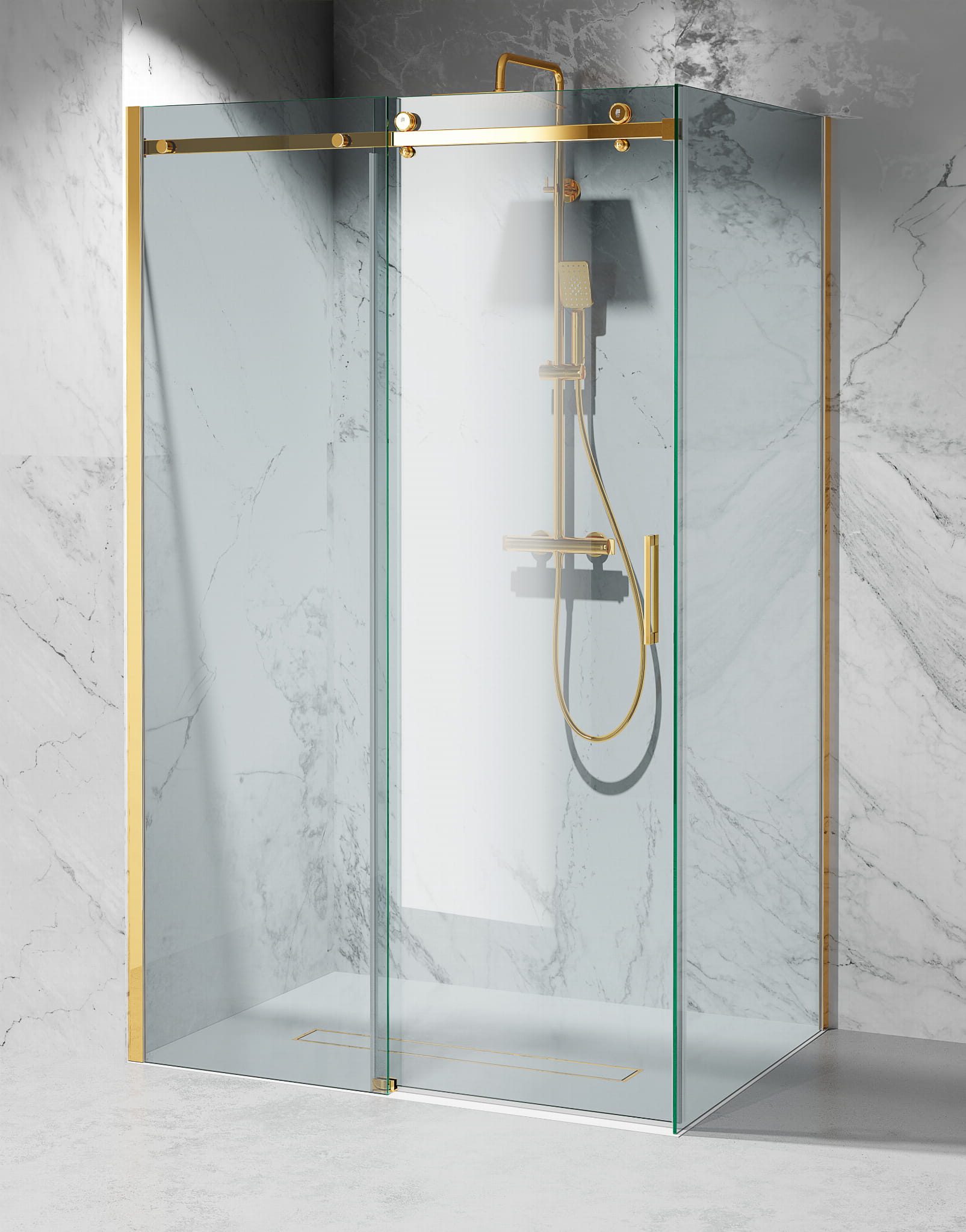 Kabina Prysznicowa Przesuwna, okucia Złoty Połysk