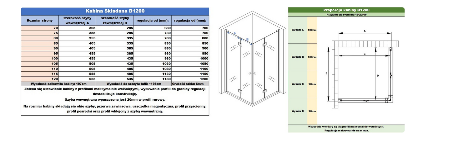 SPECYFIKACJA KABINY PRYSZNICOWEJ SKŁADANEJ: