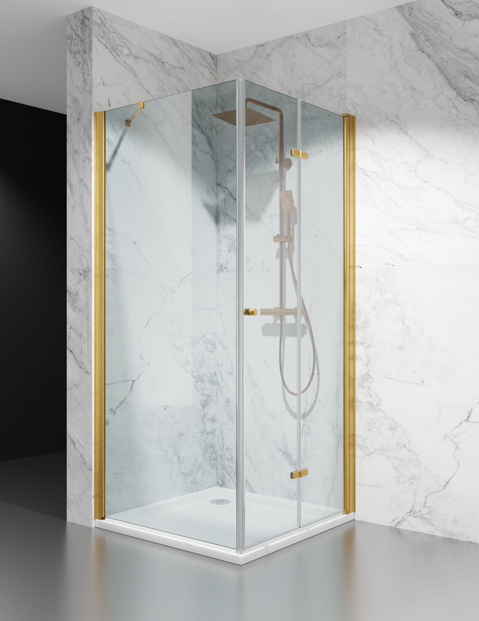 Kabina Prysznicowa Składana Jednostronnie okucia Złoty Mat, trasparentne