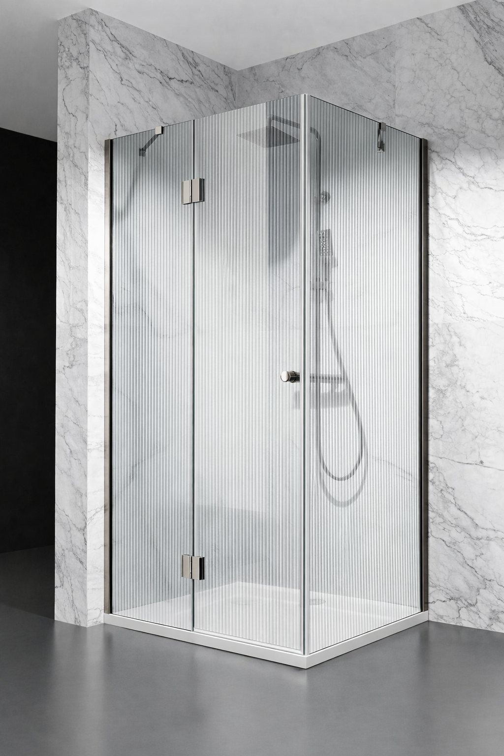 KABINA PRYSZNICOWA UCHYLNA DV8000, OKUCIA STAL POLEROWANA, SZKŁO RYFLOWANE