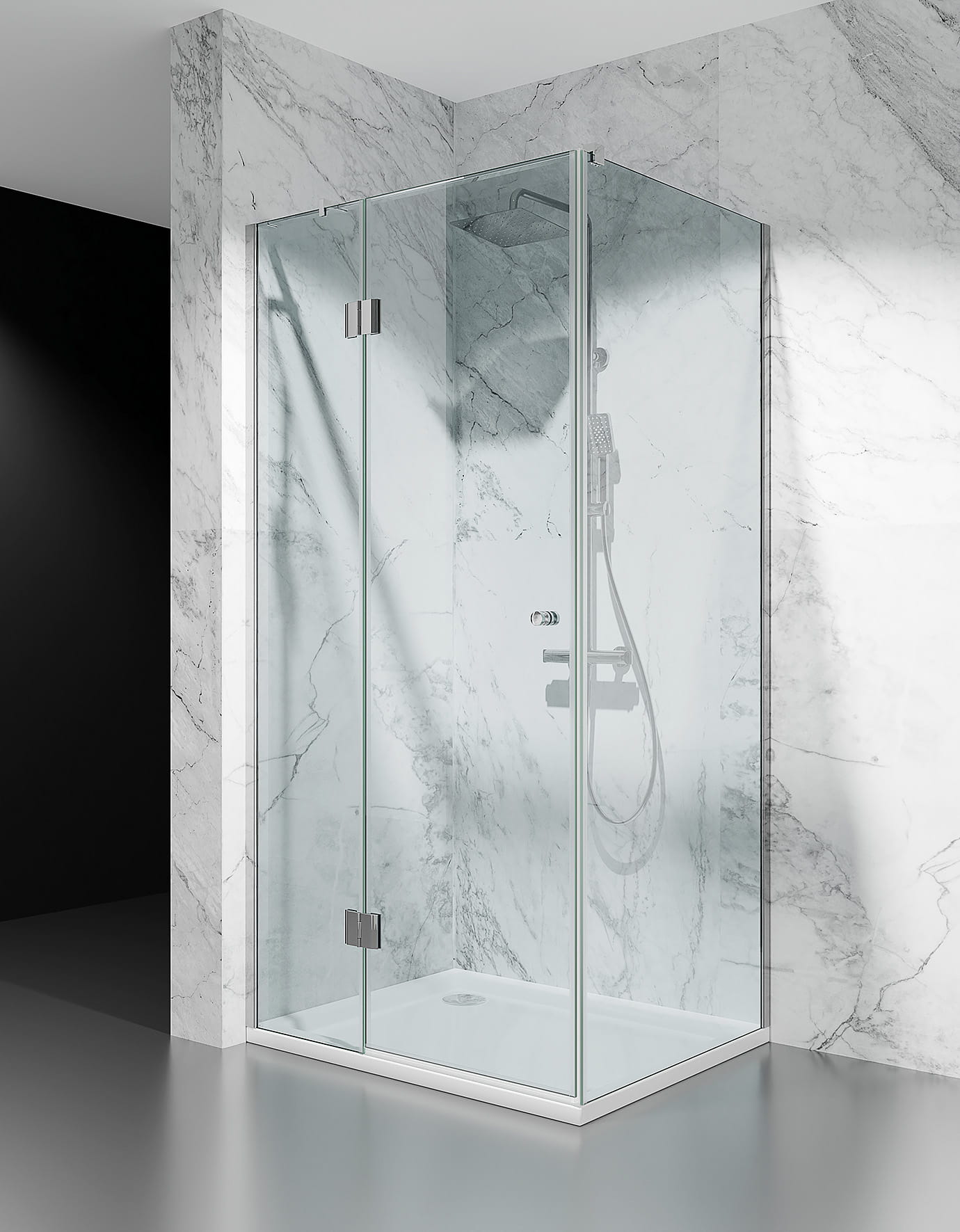 KABINA PRYSZNICOWA UCHYLNA DV8100, OKUCIA CHROM POŁYSK, SZKŁO TRANSPARENTNE