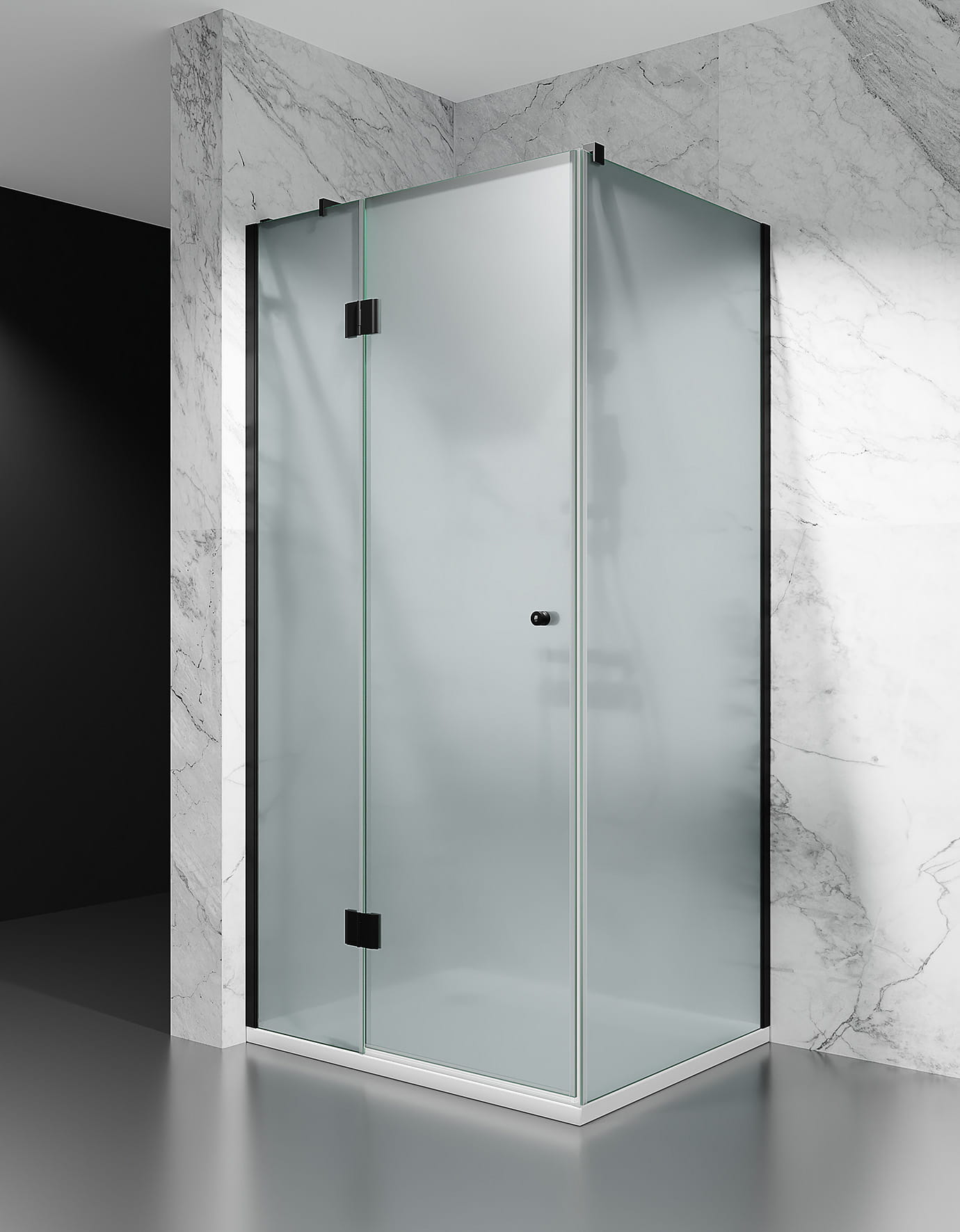 KABINA PRYSZNICOWA UCHYLNA DV8100, OKUCIA CZARNY MAT, SZKŁO MROŻONE