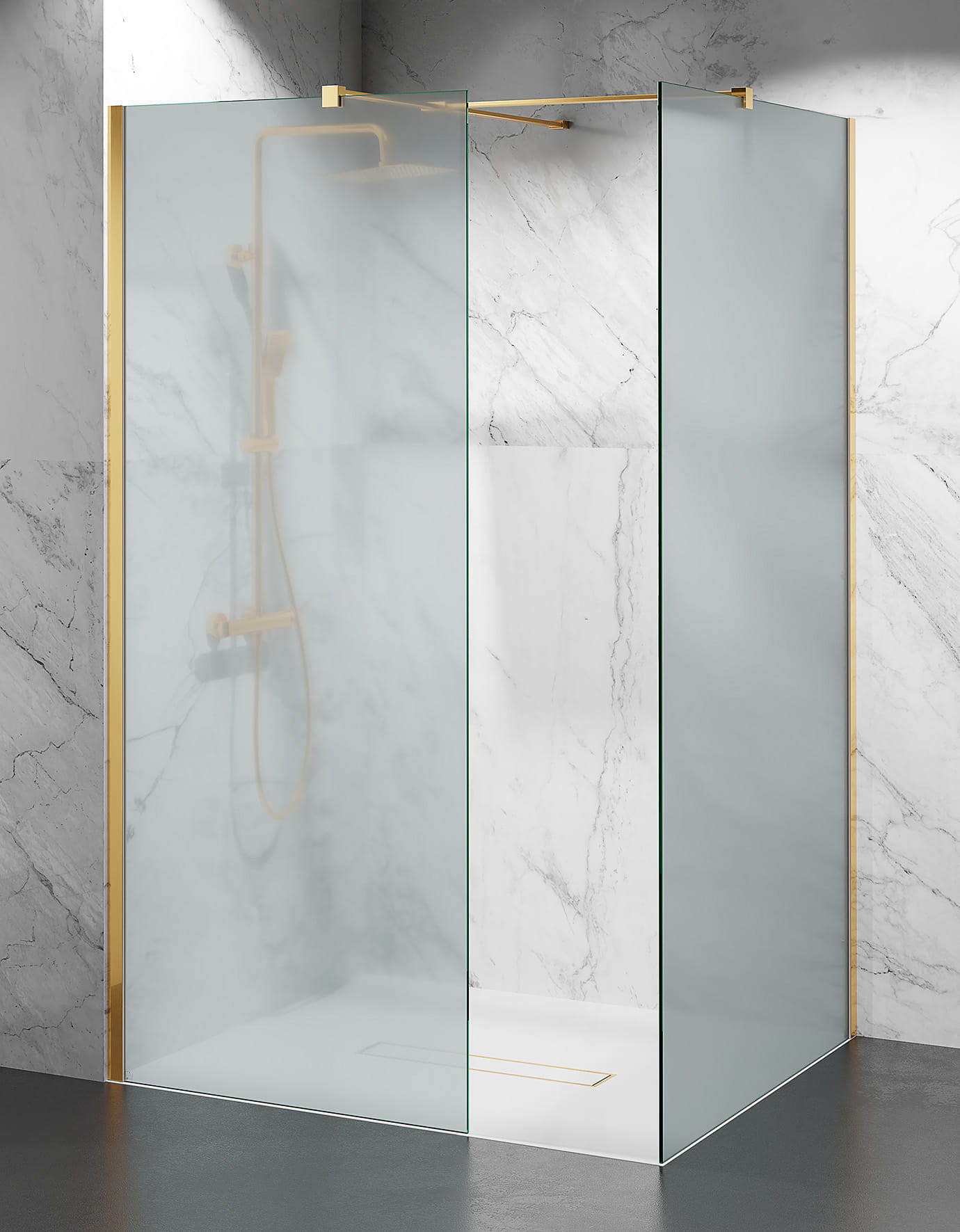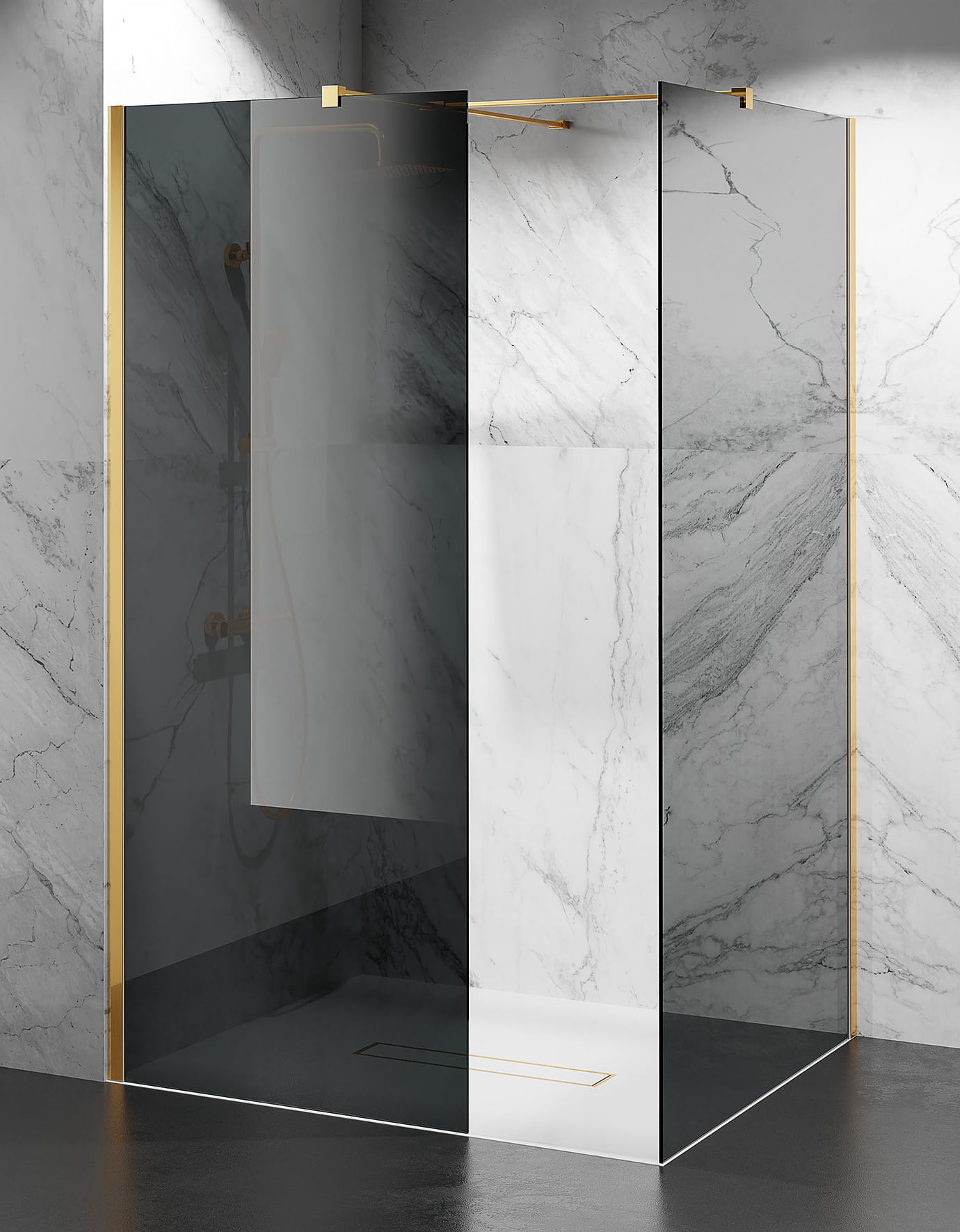 Kabina Prysznicowa Walk-In Złoty Połysk W9V2 Szkło 8mm