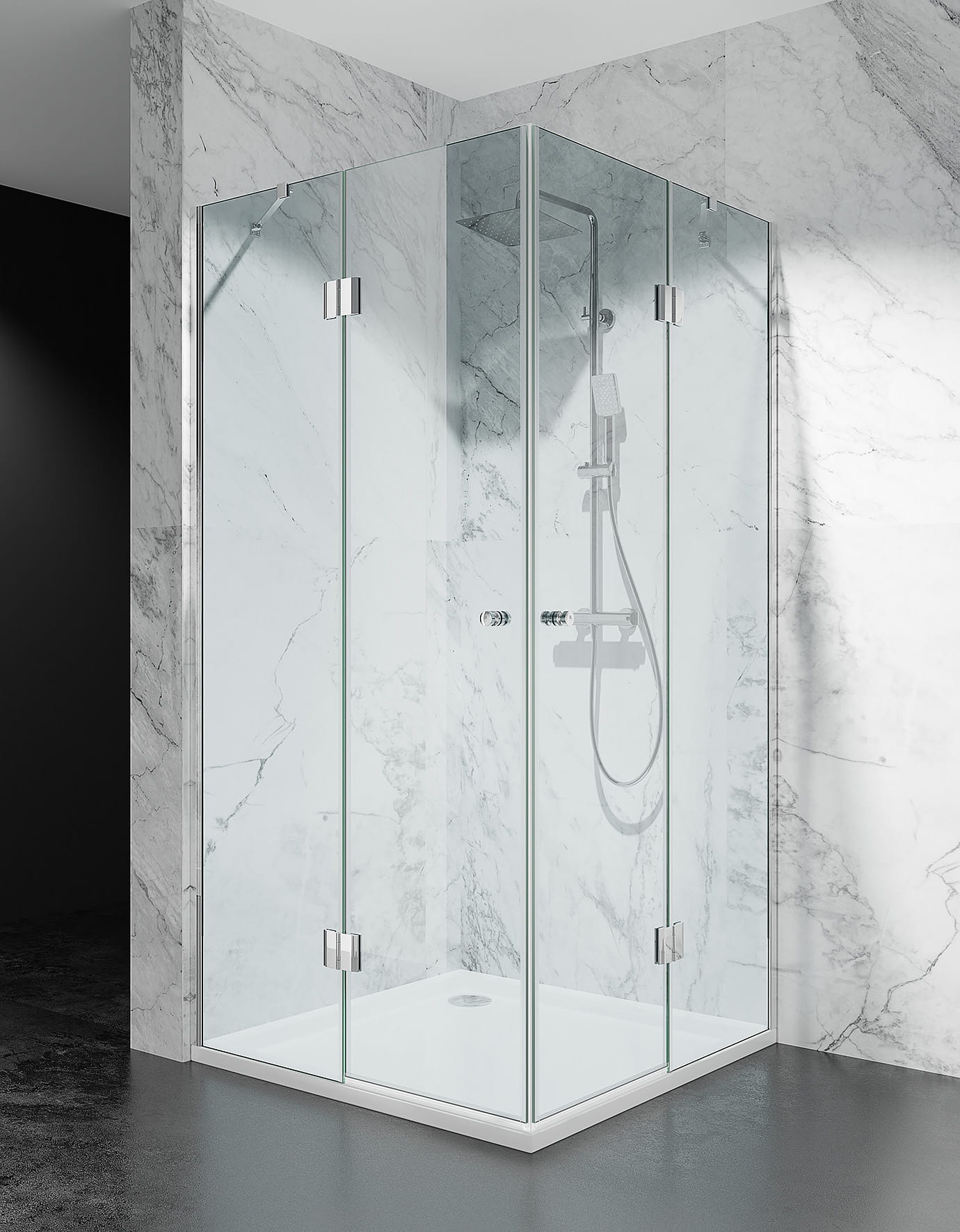 KABINA PRYSZNICOWA Z BRODZIKIEM, UCHYLNA, CHROMOWANE OKUCIA, MODEL DV2000
