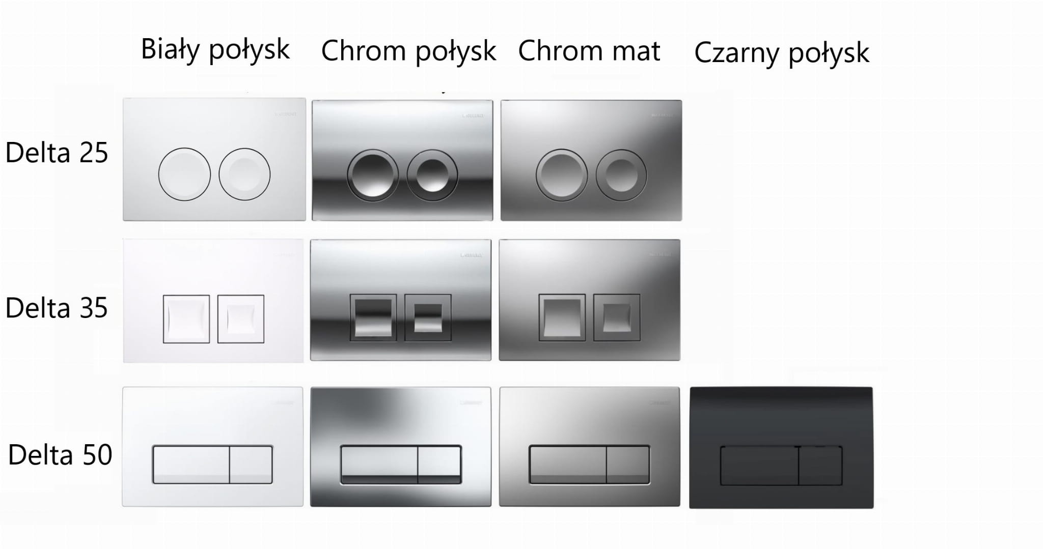- spłuczka z dwudzielnym przyciskiem uruchamiającym Delta20, Delta21, Delta50