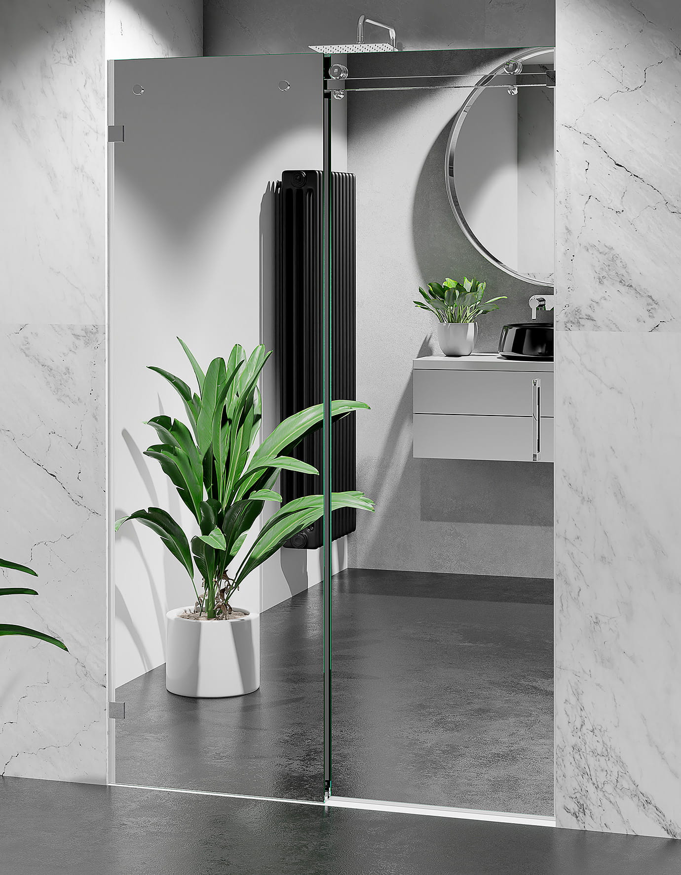 - rodzaj drzwi prysznicowych: wnękowe, przesuwne