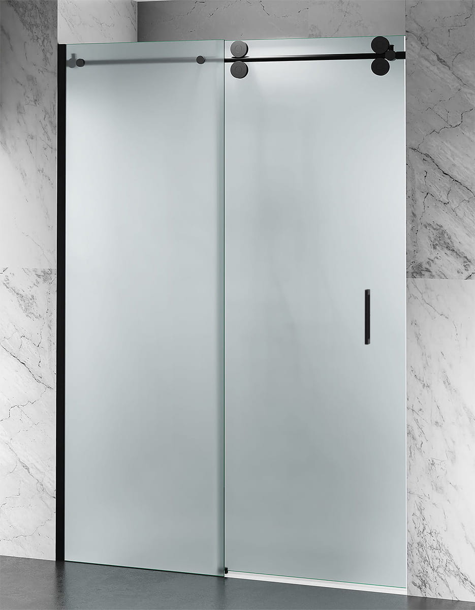 DRZWI PRYSZNICOWE PRZESUWNE D30, OKUCIA CZARNY MAT, SZKŁO MROŻONE