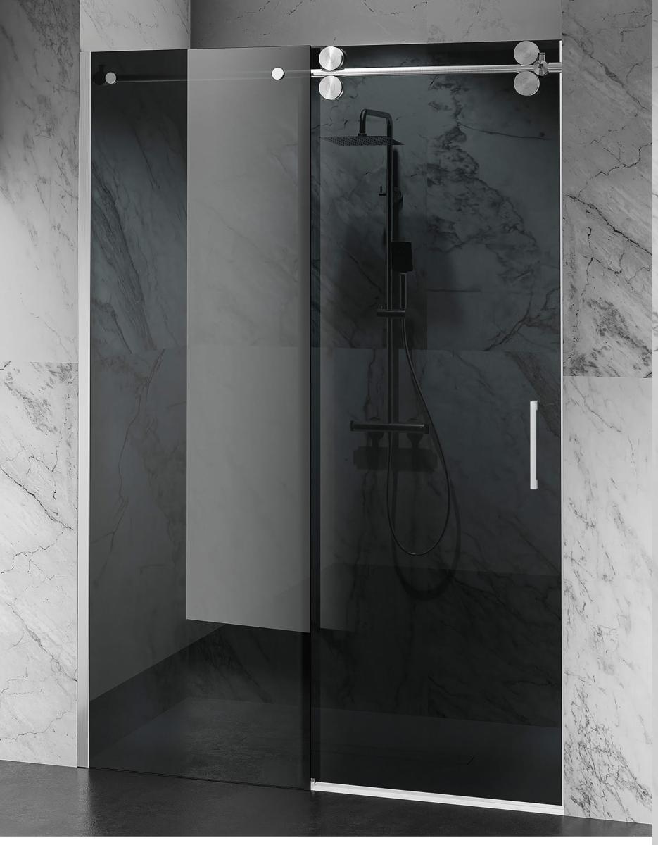 DRZWI PRYSZNICOWE PRZESUWNE D30, OKUCIA SREBRNY MAT, SZKŁO GRAFIT