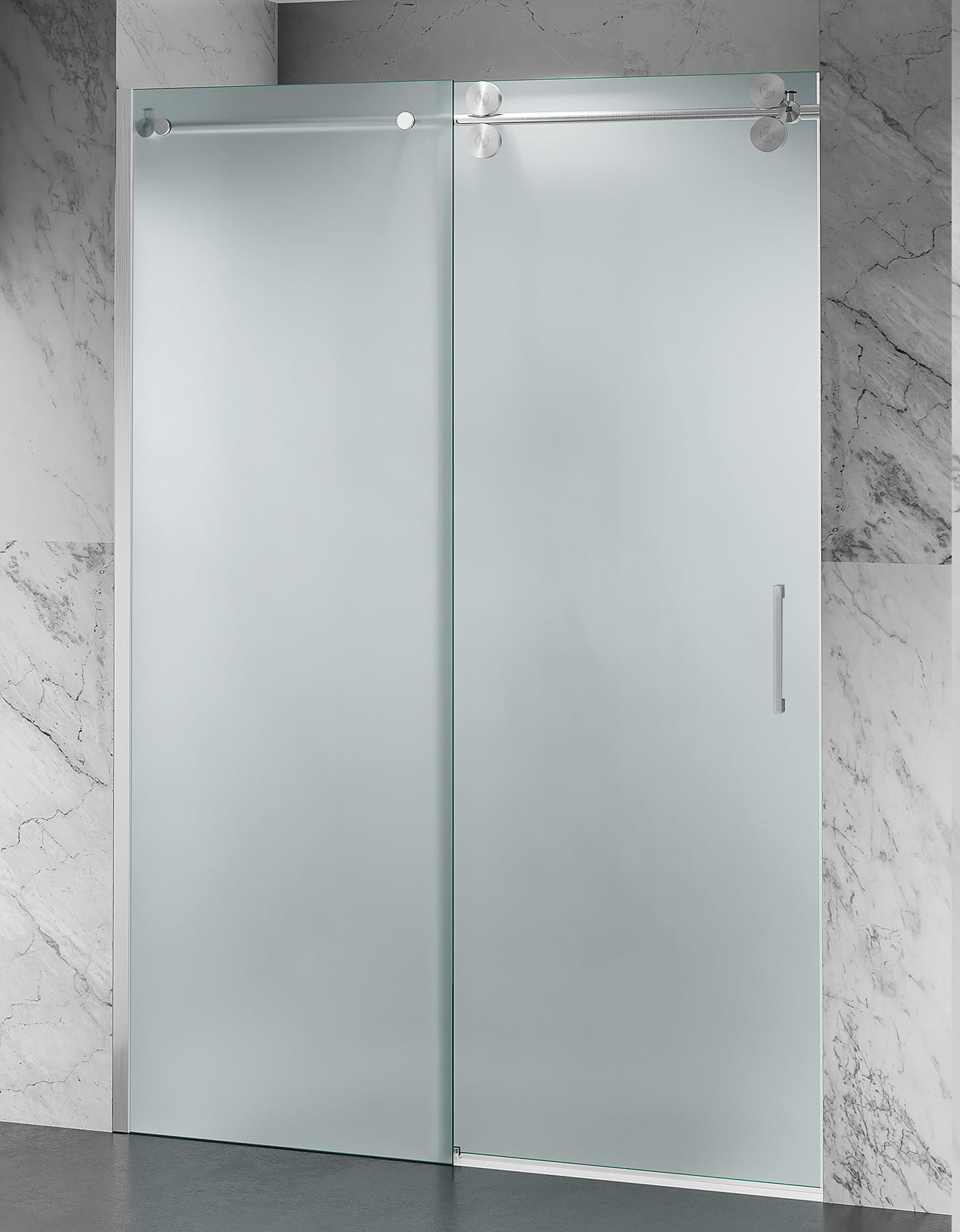 DRZWI PRYSZNICOWE PRZESUWNE D30, OKUCIA SREBRNY MAT, SZKŁO MROŻONE