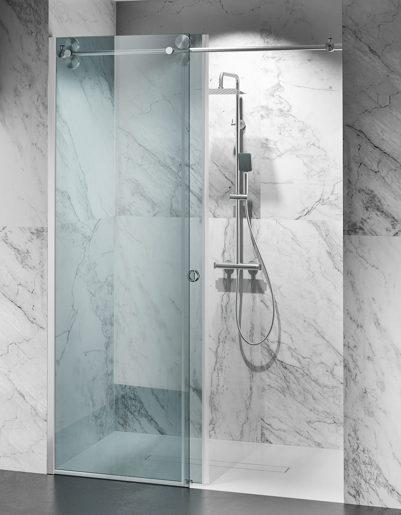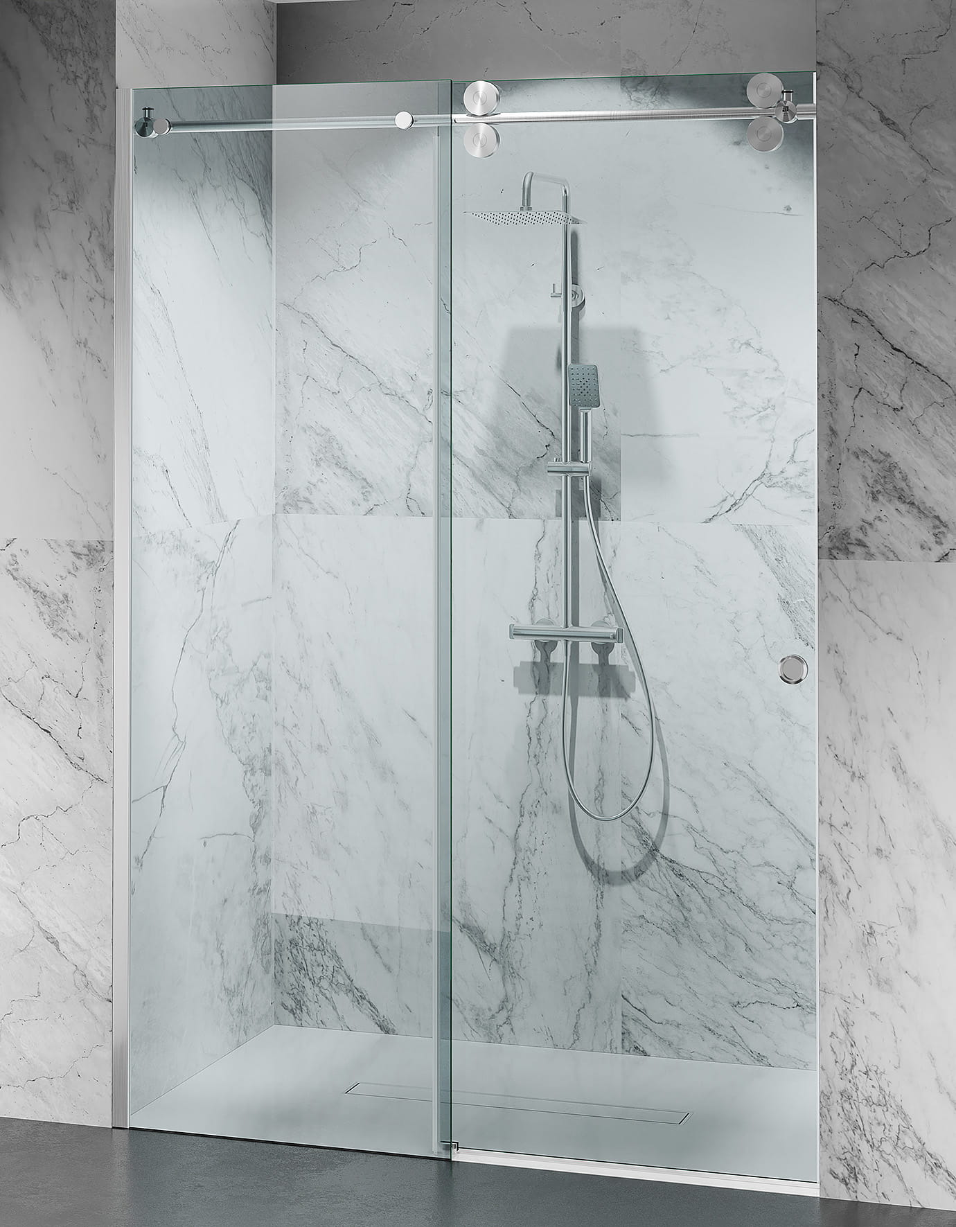 DRZWI PRYSZNICOWE PRZESUWNE D30, OKUCIA SREBRNY MAT, SZKŁO TRANSPARENTNE