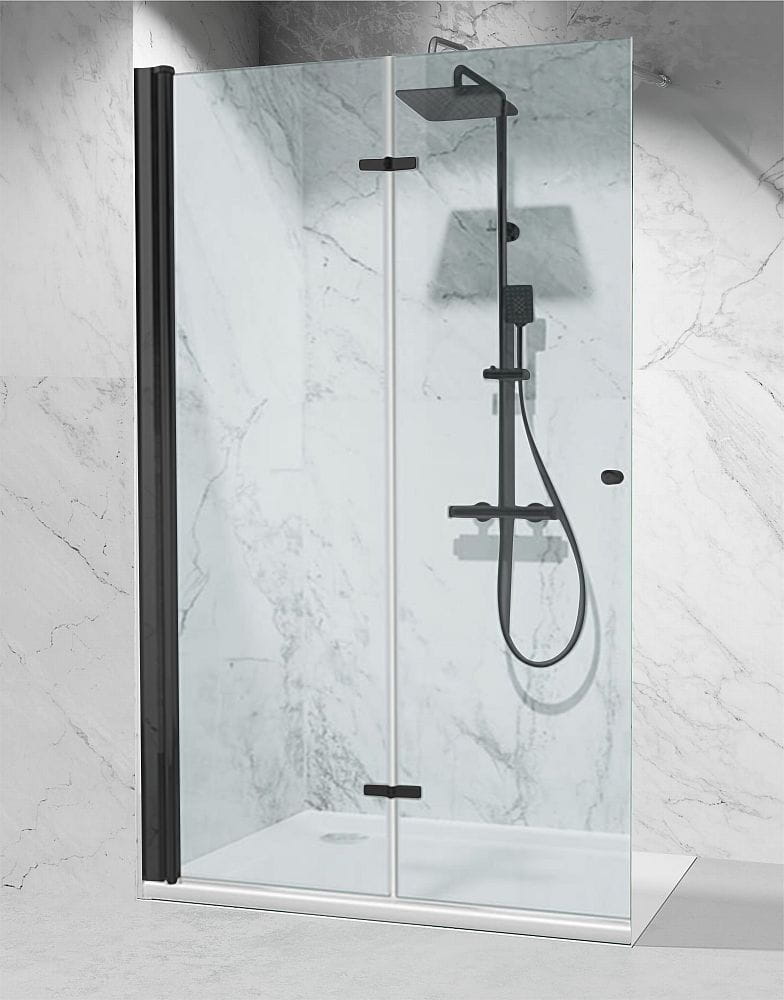 Ścianka Prysznicowa Walk in Składana, kolor okuć Czarny Mat