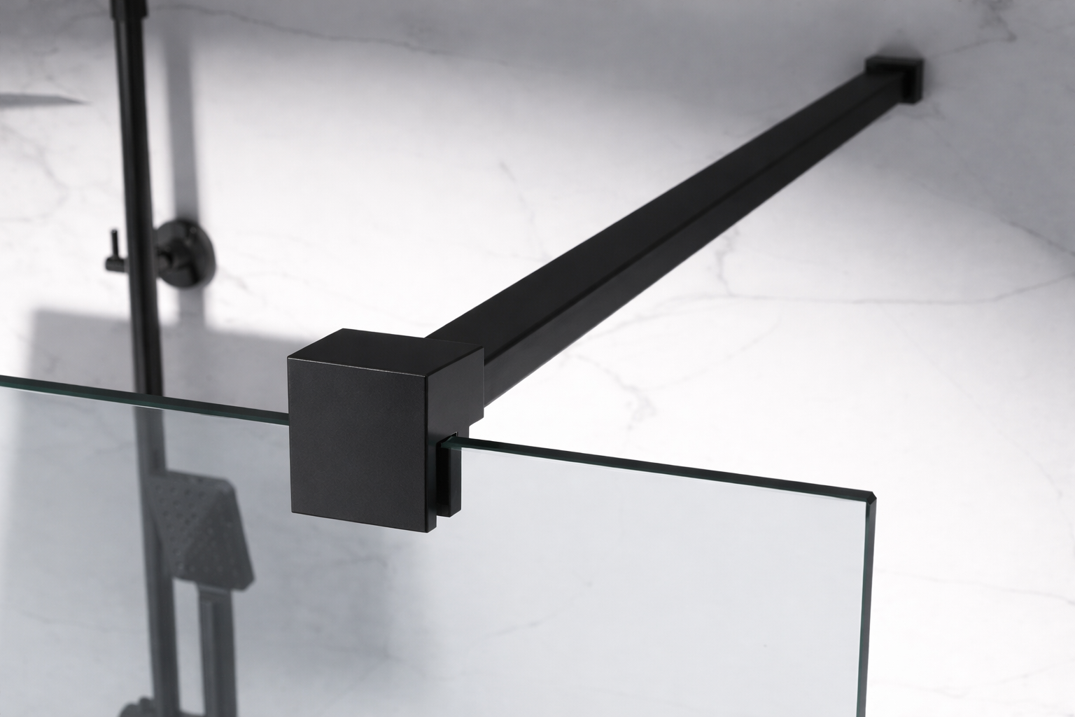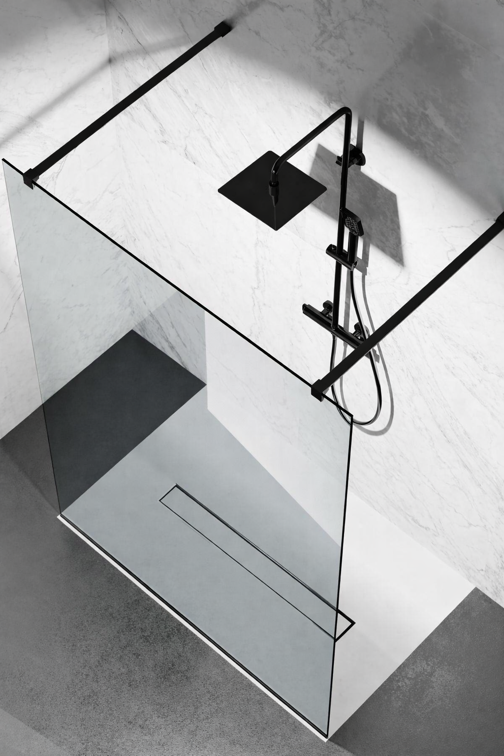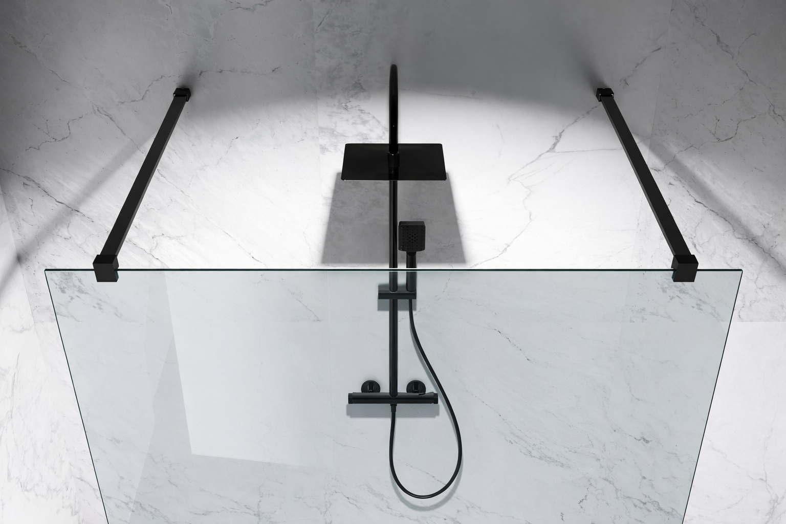 Transparentna Szyba prysznicowa Wolnostojąca Walk-In okucia czarny mat