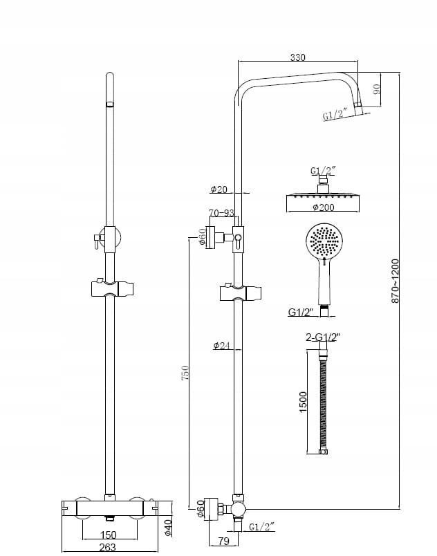 - Bateria: Termostatyczna natryskowa z głowicą ceramiczną