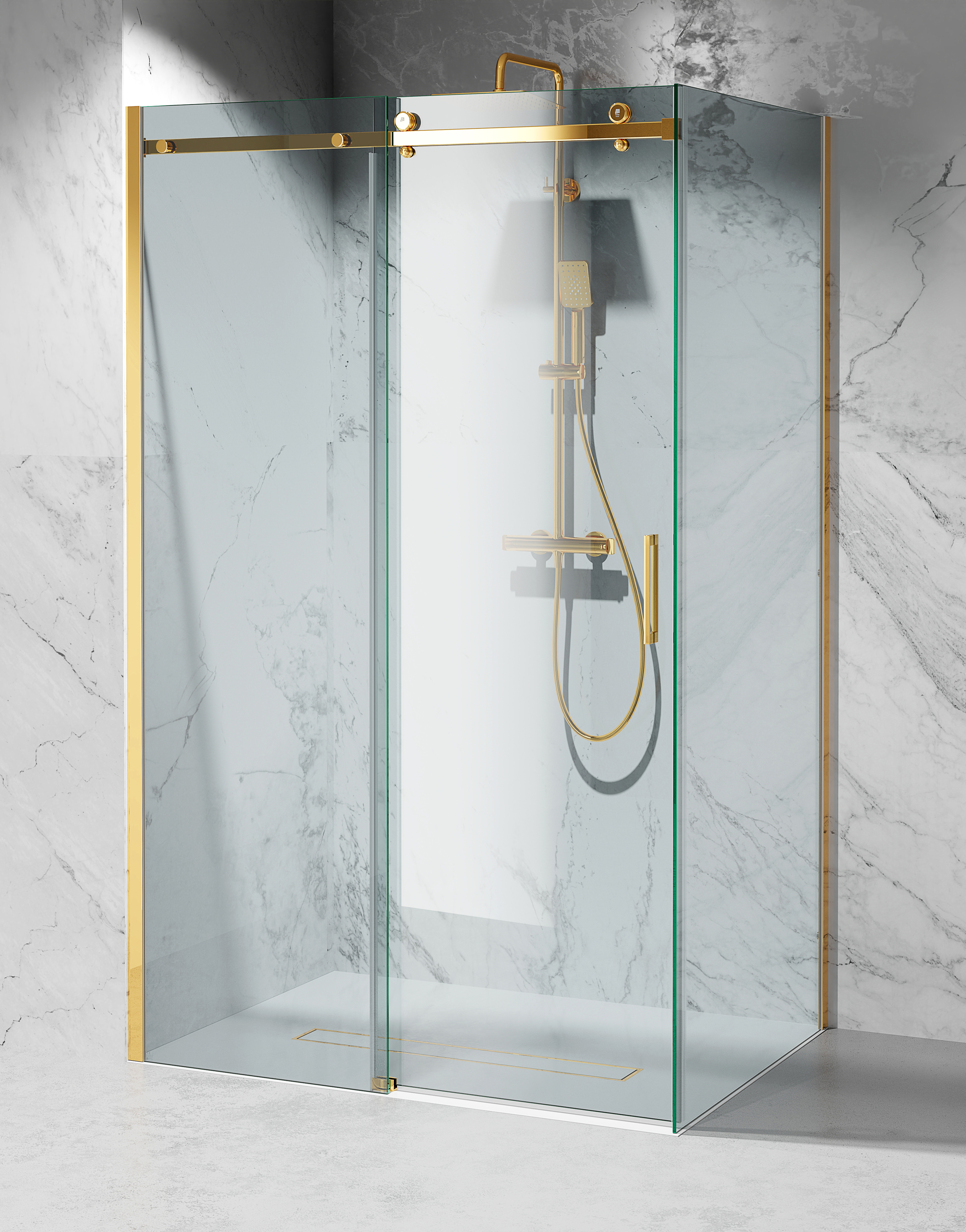 Złota Kabina Prysznicowa Przesuwna C20, Szkło Transparentne